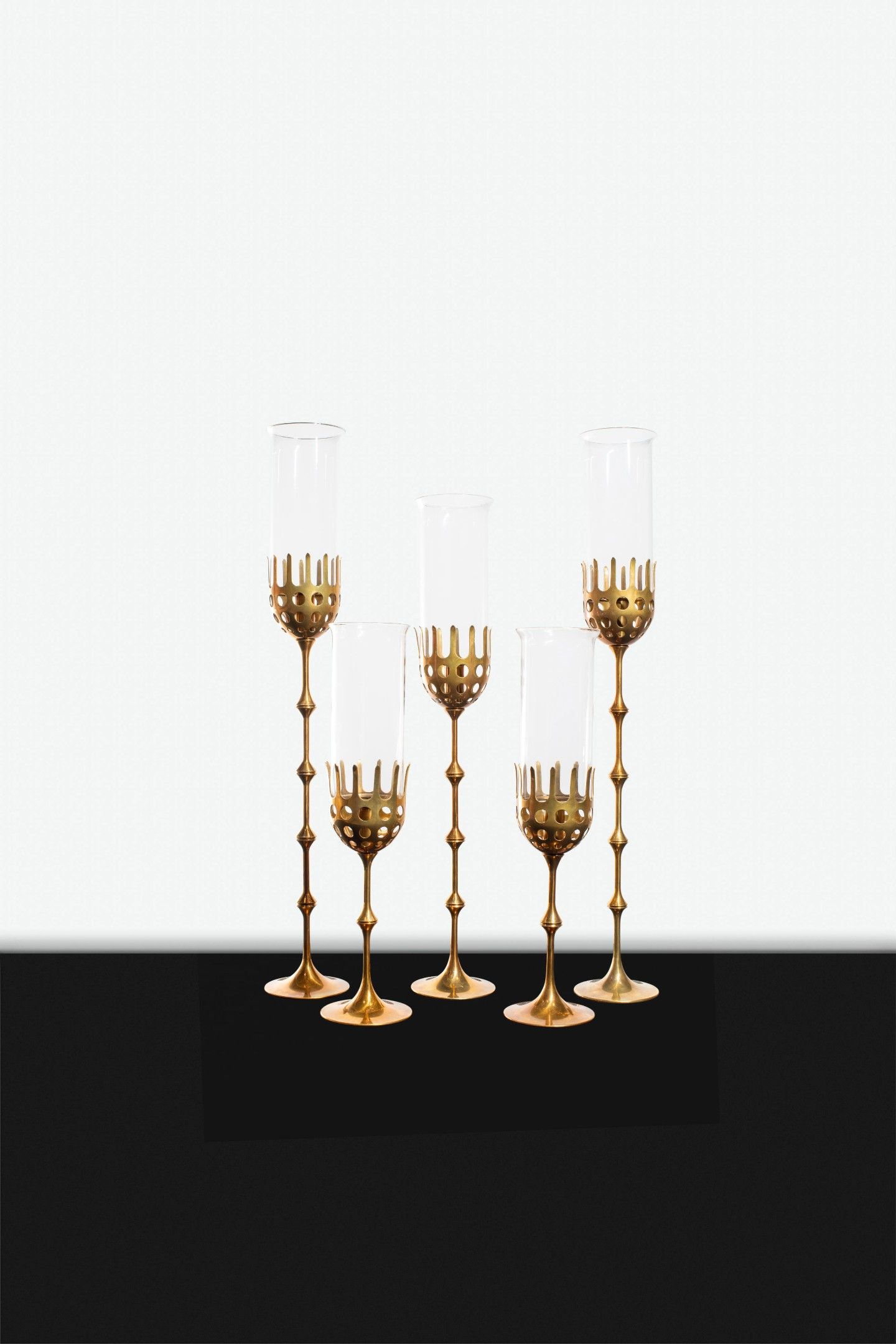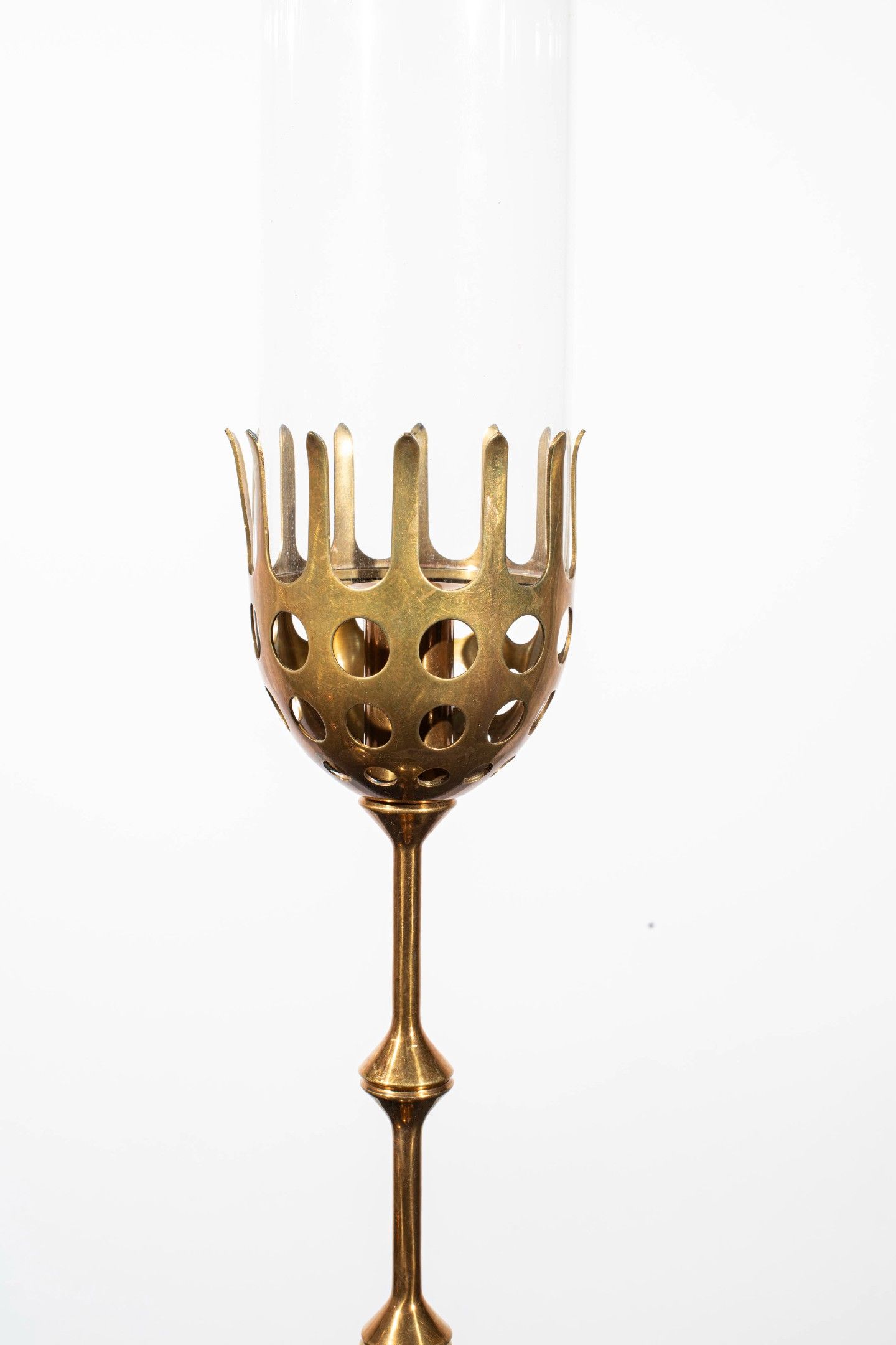 A set of five brass and glass “Hurricane” candleholders by Bjørn Wiinblad - circa 1960