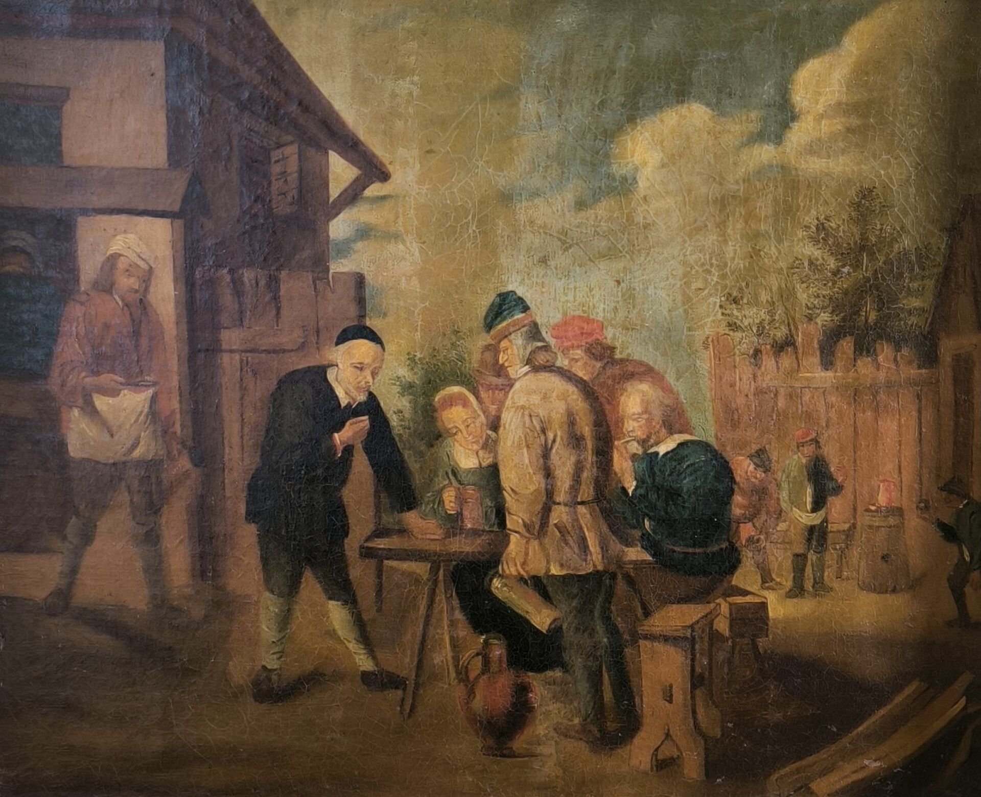 Ecole hollandaise, XIXème. Scène de taverne. Huile sur toile. 48,5 x 60 cm. Cadre doré