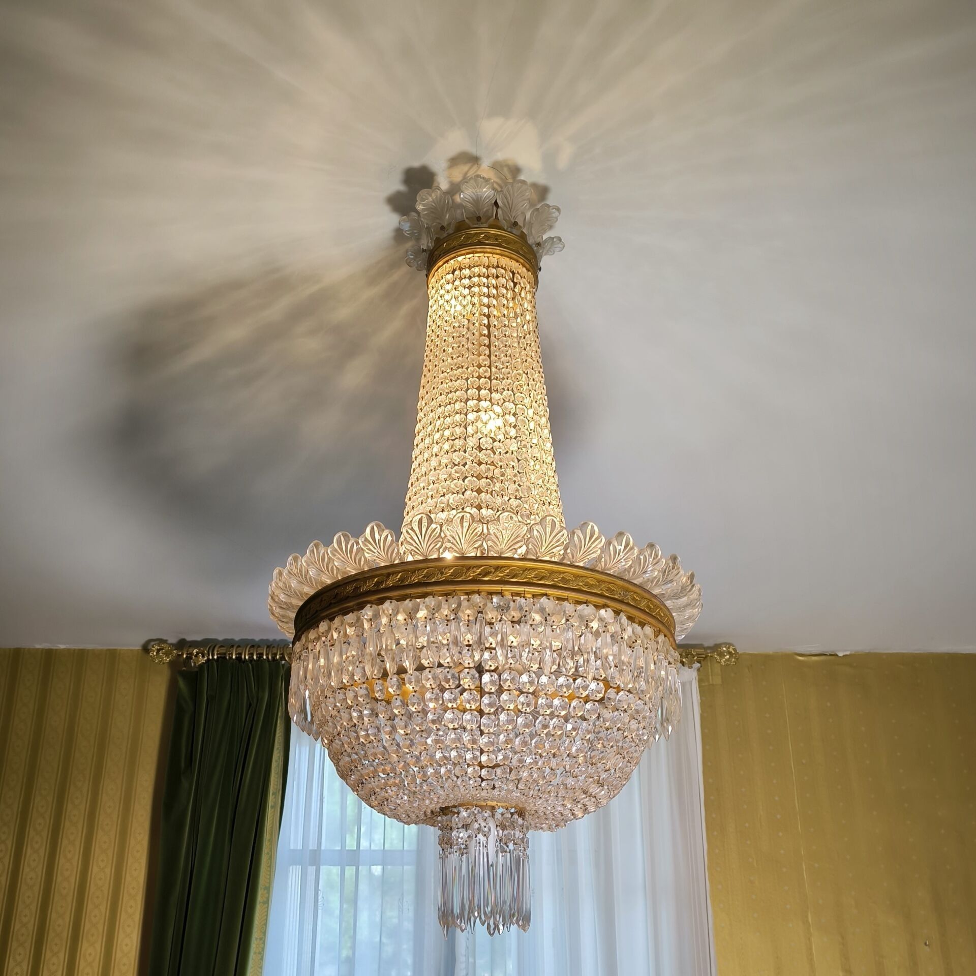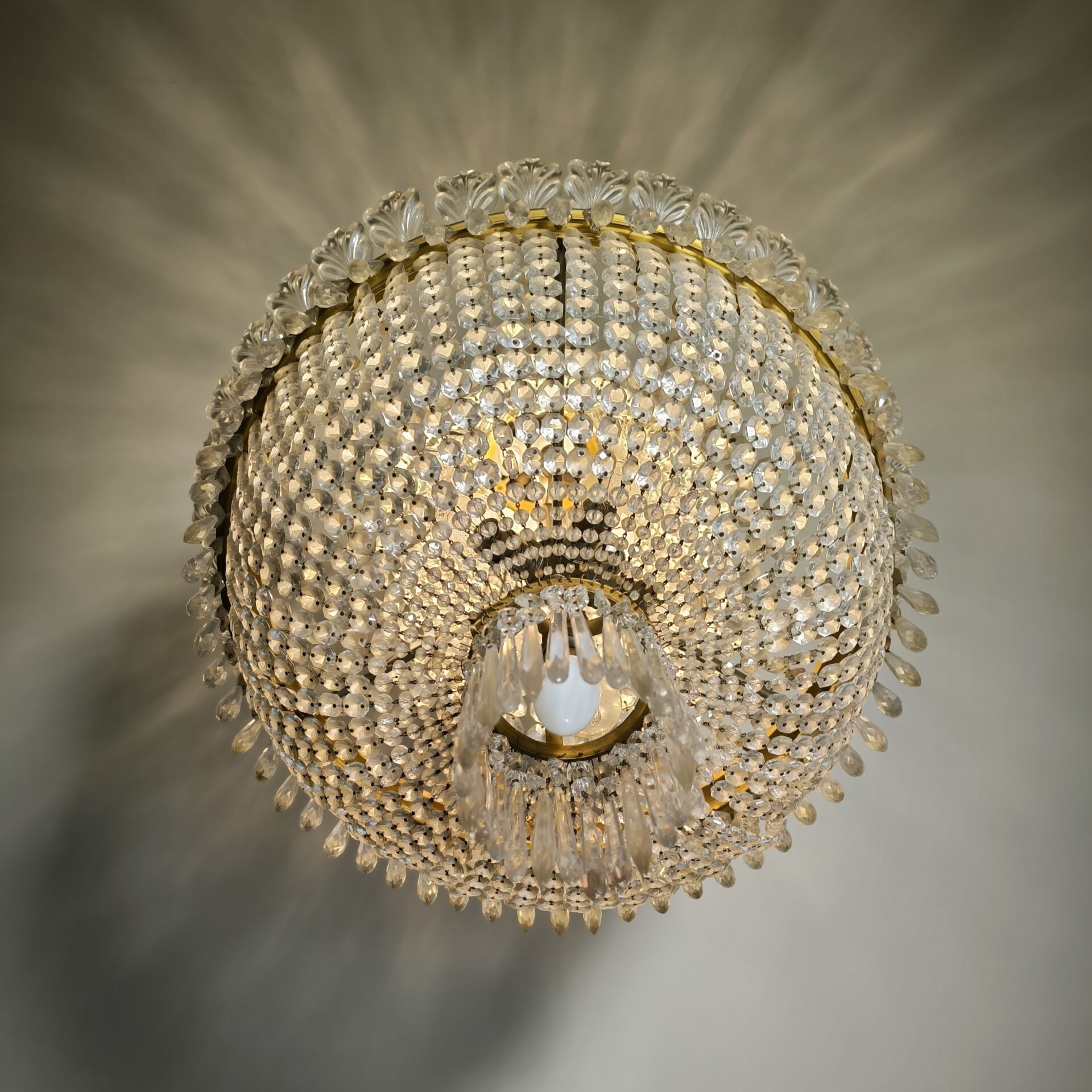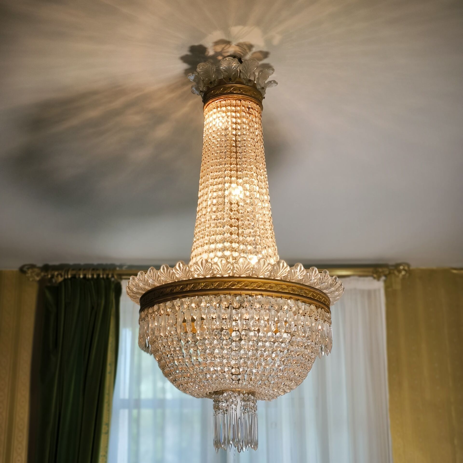 Important lustre corbeille en cristal et bronze, style Empir…