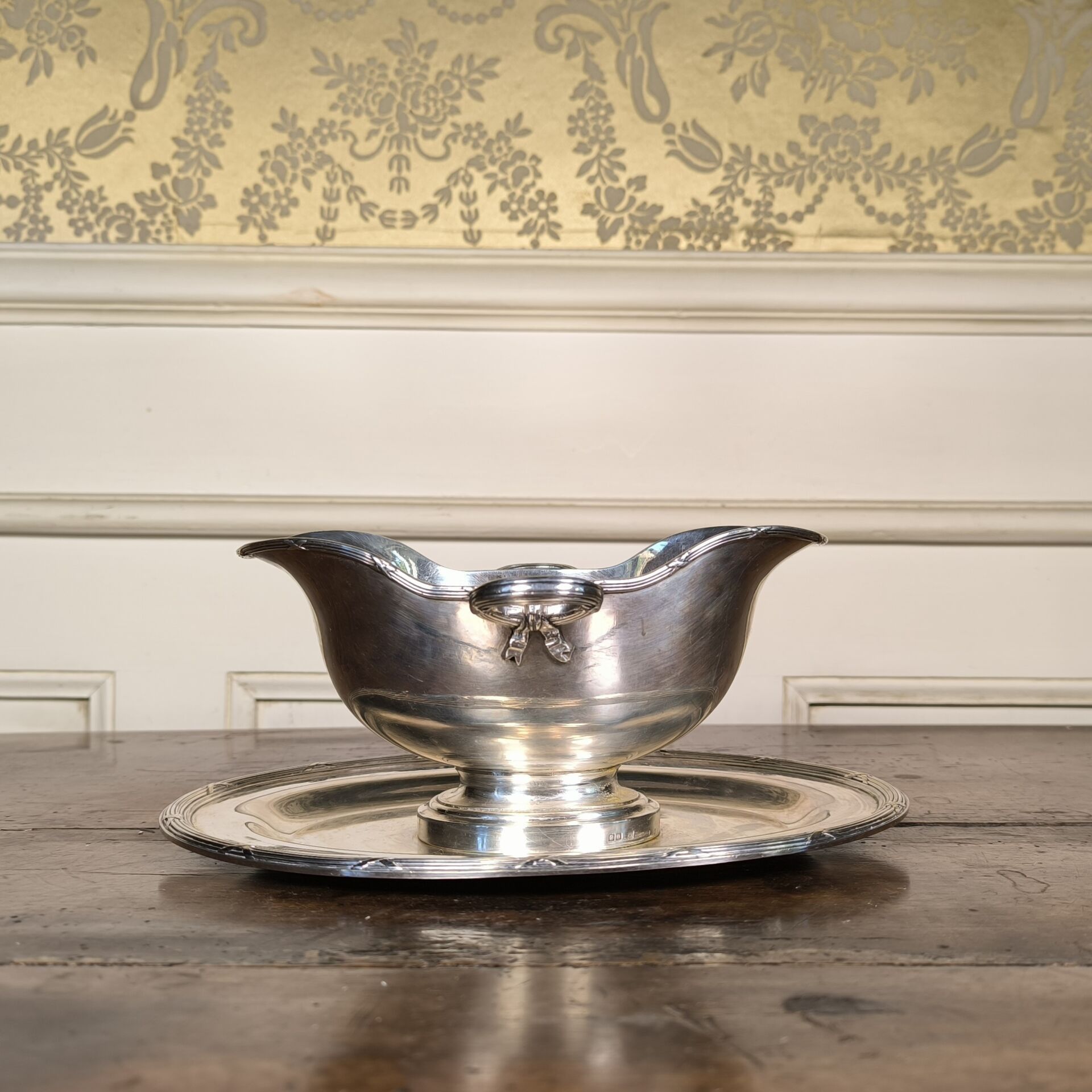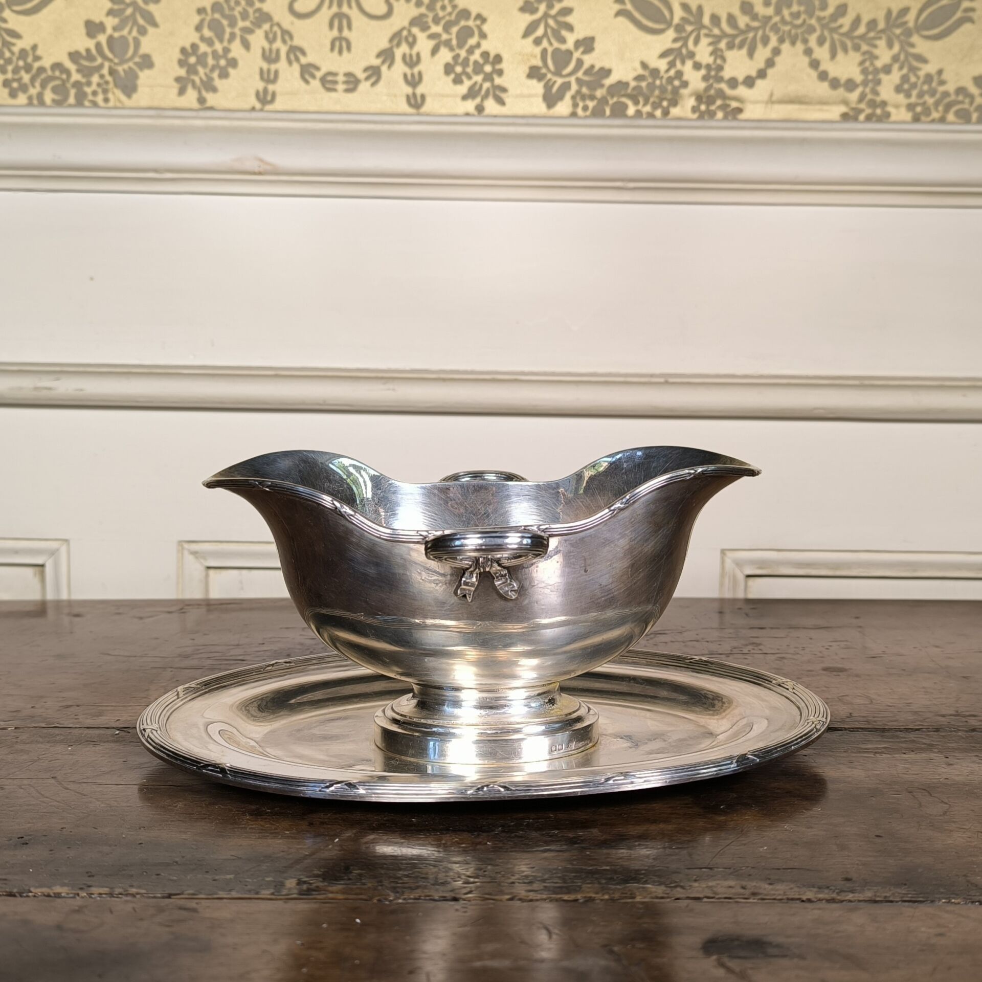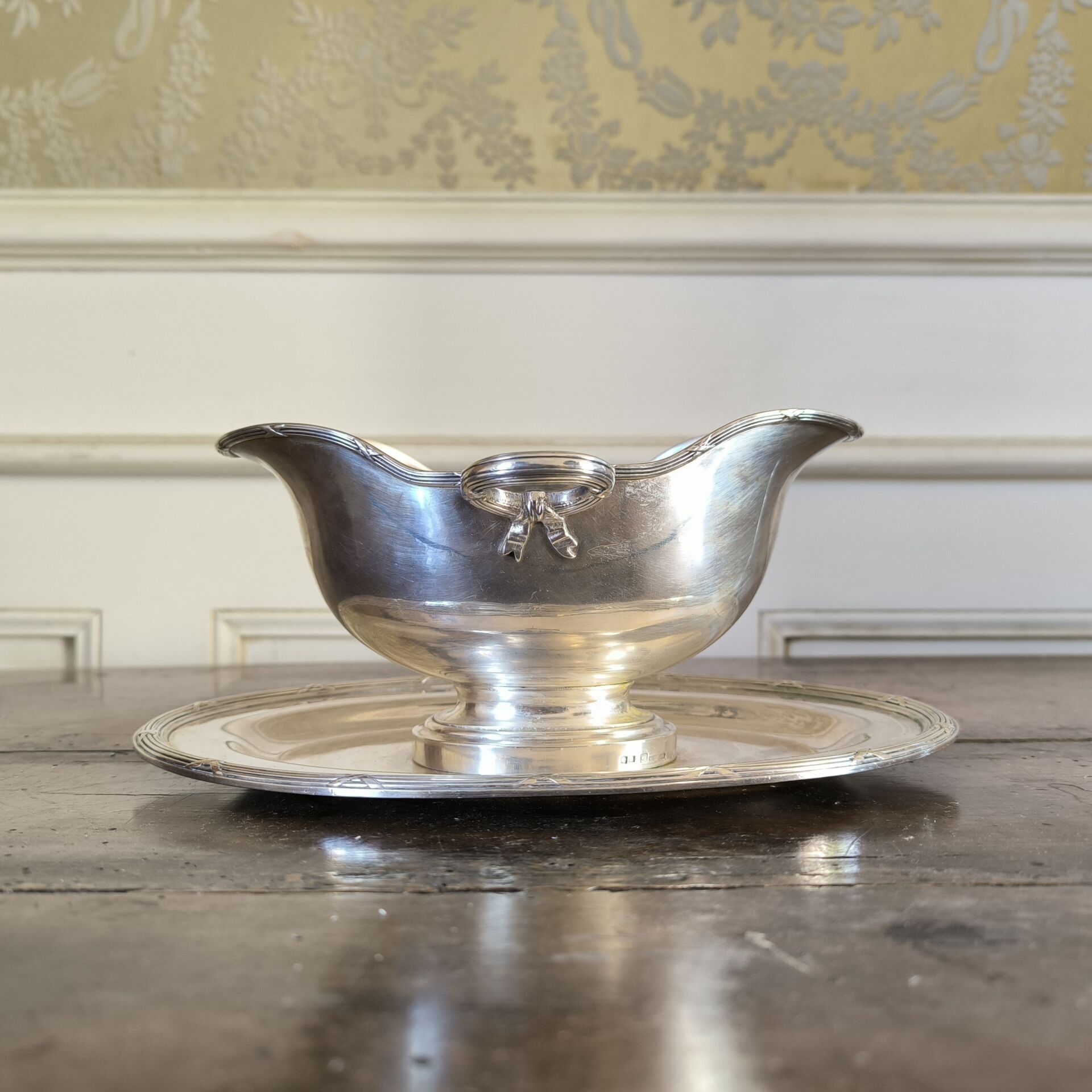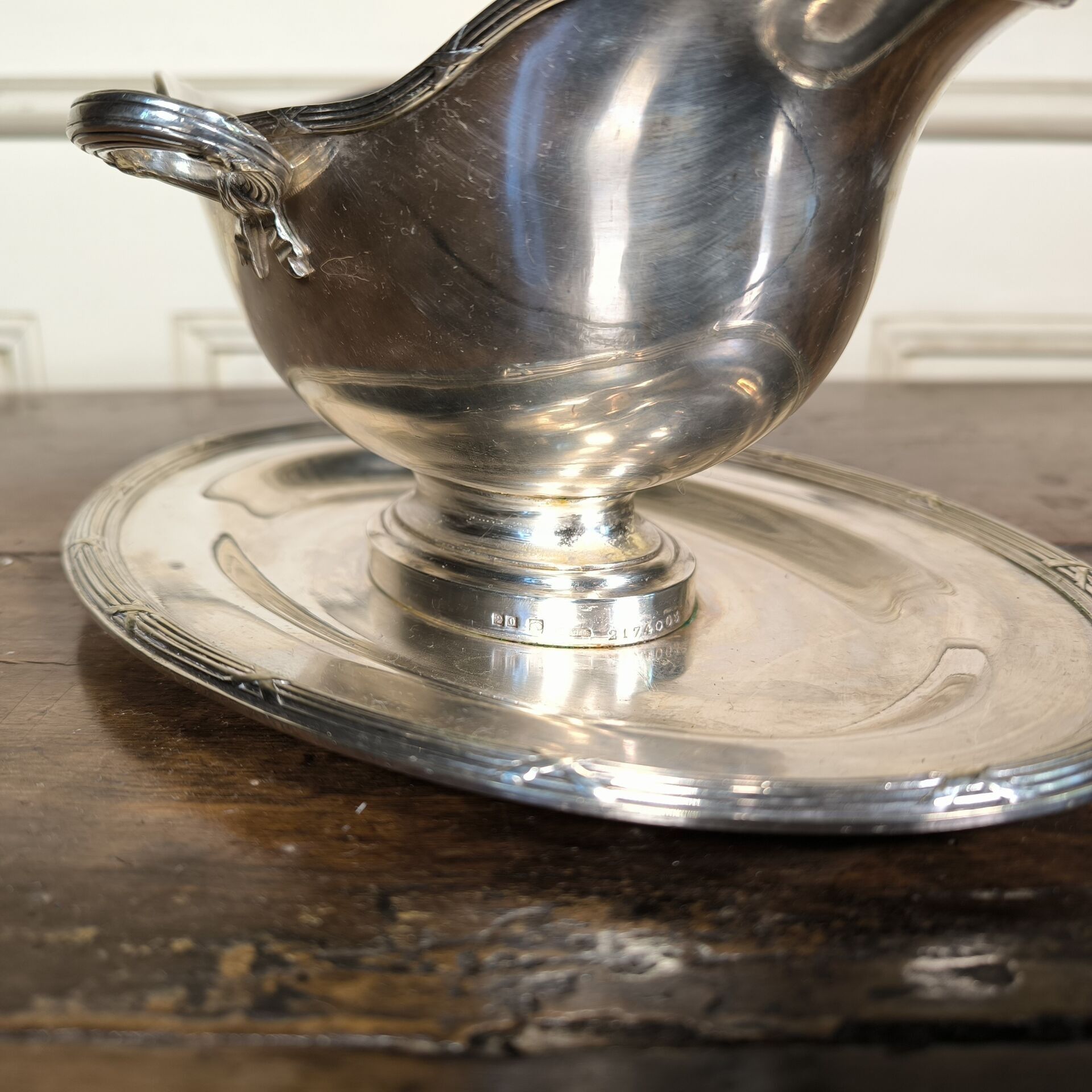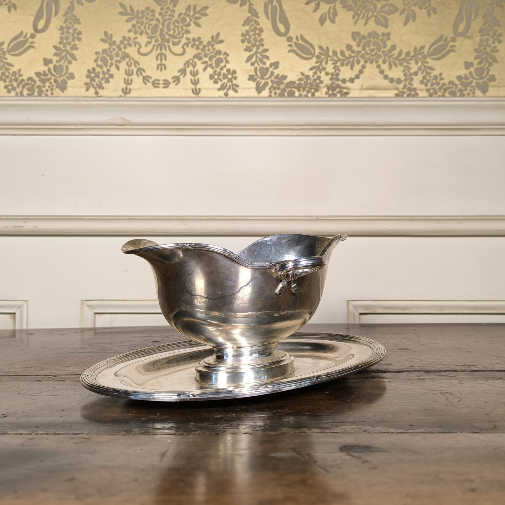 CHRISTOFLE. Saucière en métal argenté, modèle Louis XVI.