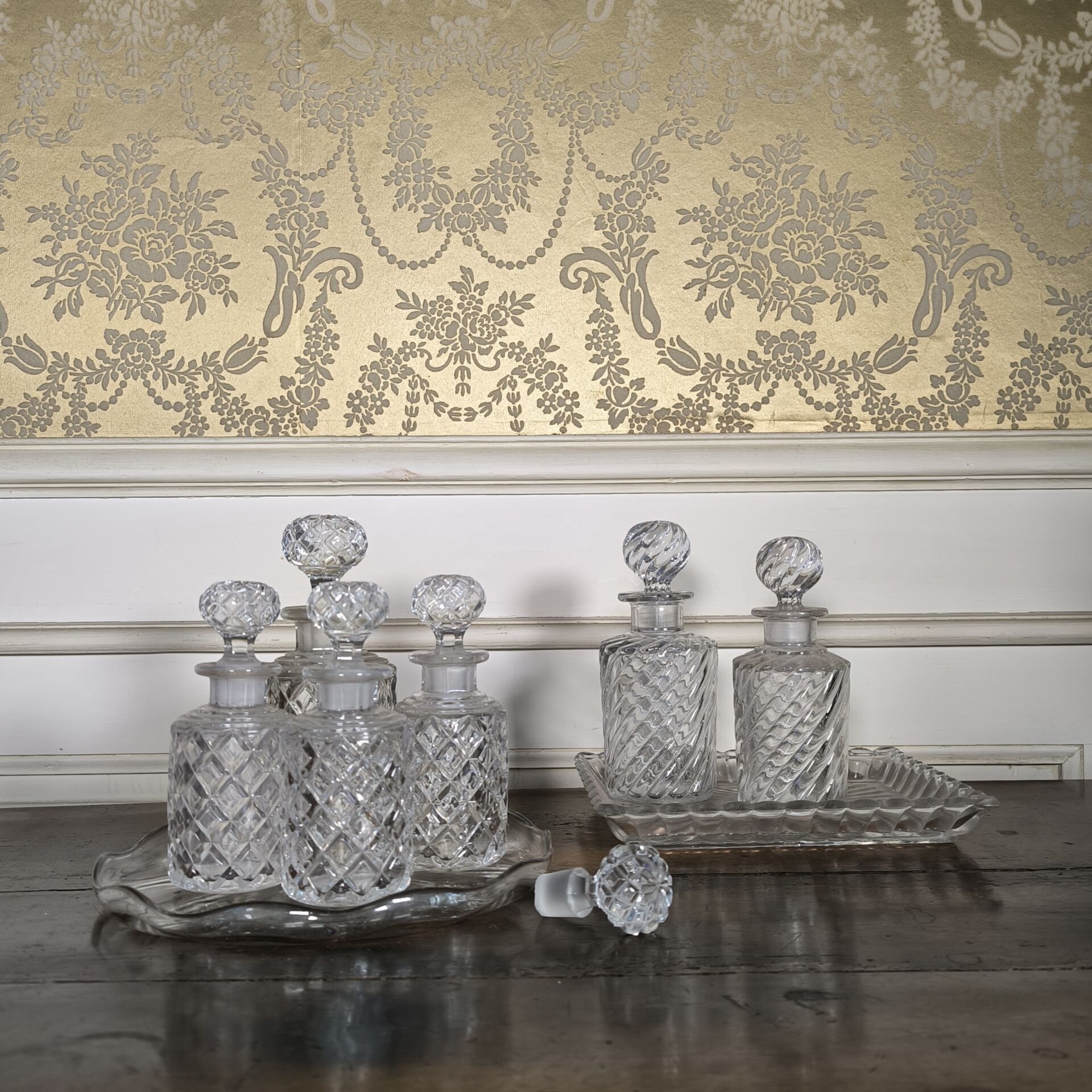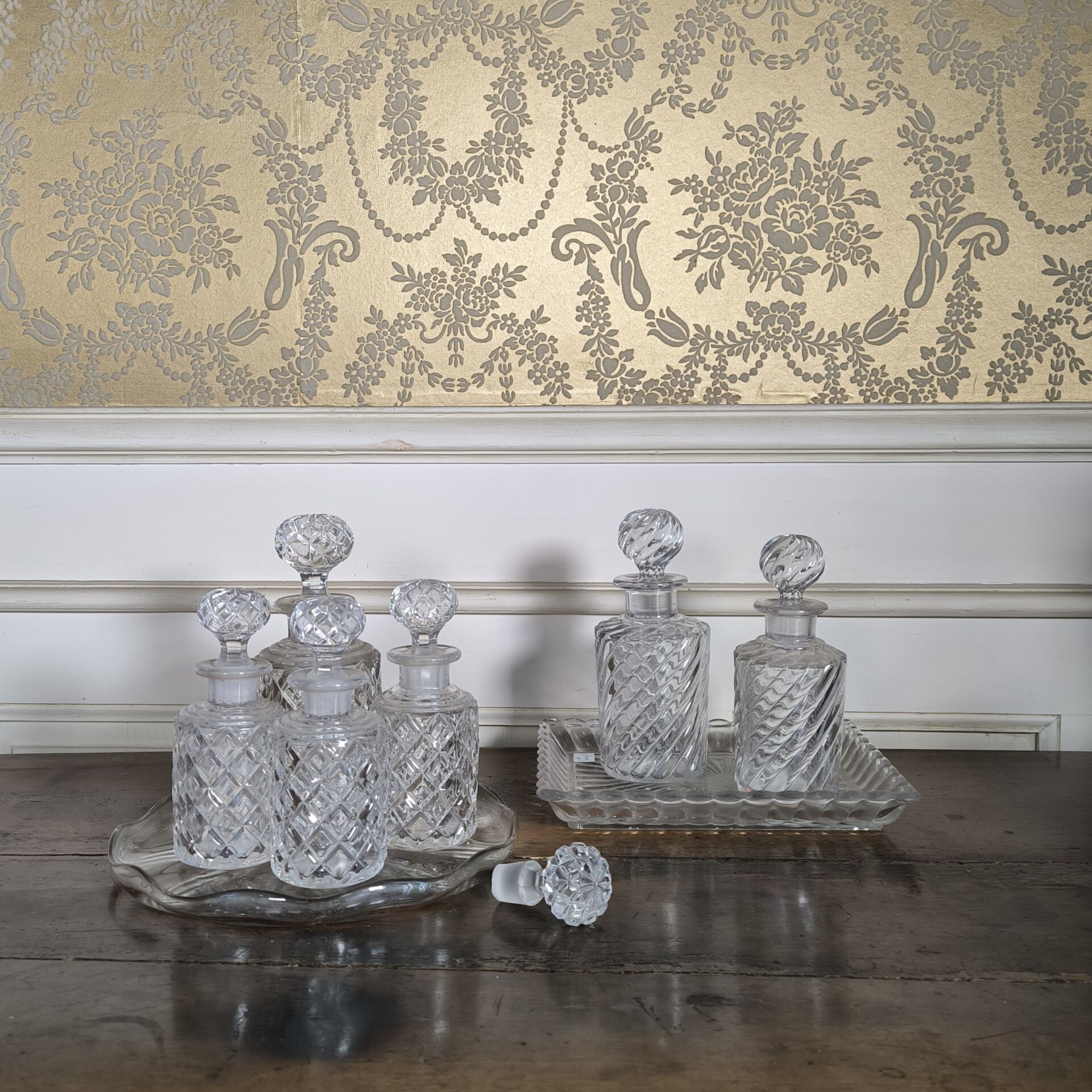 - nécessaire de toilette dans le goût de Baccarat : plateau (24 x 18 cm, 2 flacons (Haut. 18 et 19 cm)