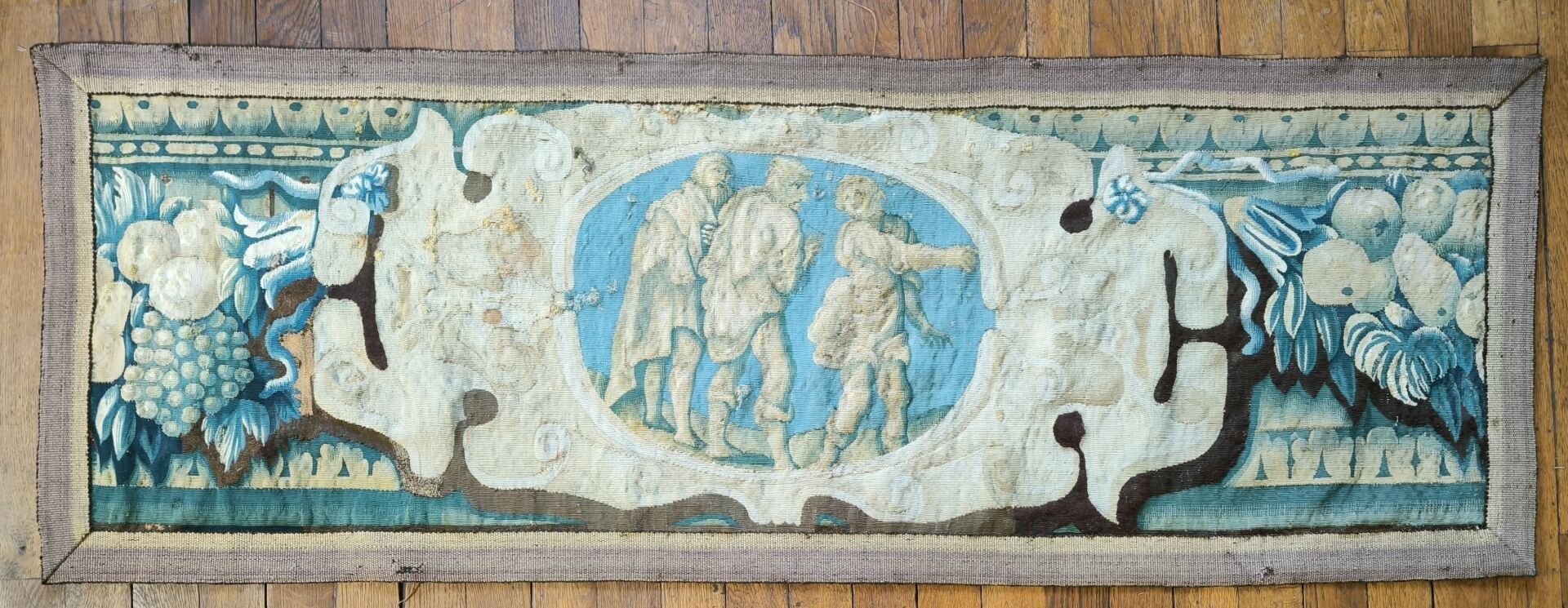 Fragment de bordure de tapisserie. XVIIème. (petites usures) 161 x 58 cm