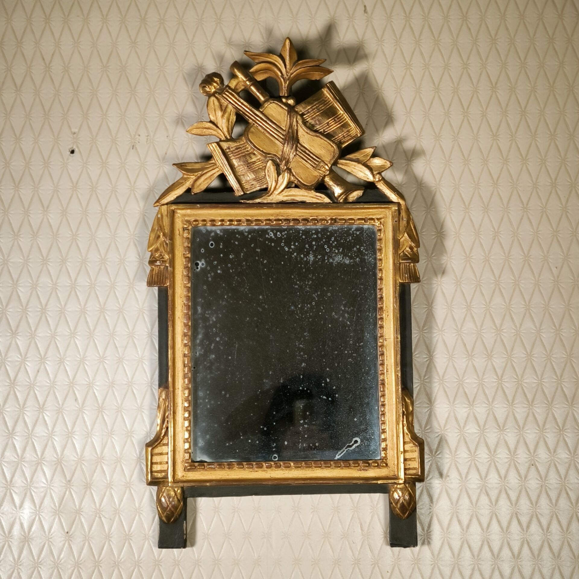Petite glace à fronton, à décor d'une partition et d'un viol…