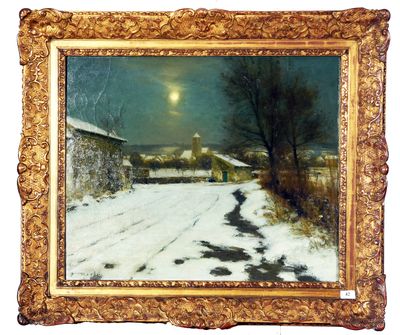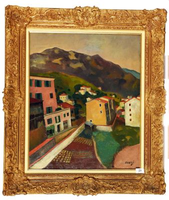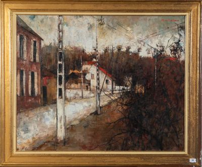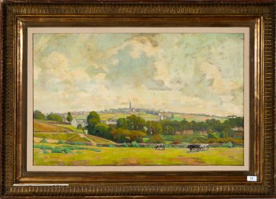 Edmond HEUZE (1884 - 1967) Village près des collines,