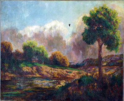 André LEVEILLE (1880 - 1963) Bord de rivière,