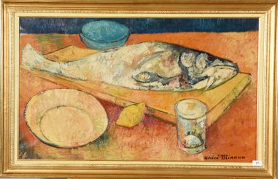 André MINAUX (1923 - 1986) Nature morte au poisson,