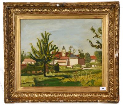 Jean ARNAVIELLE (1881 - 1961) Campagne, au fond village ,