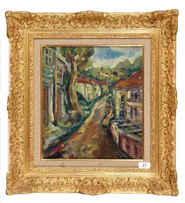 Madeleine LUKA (1894 - 1989) Homme st son chien devant la ma…