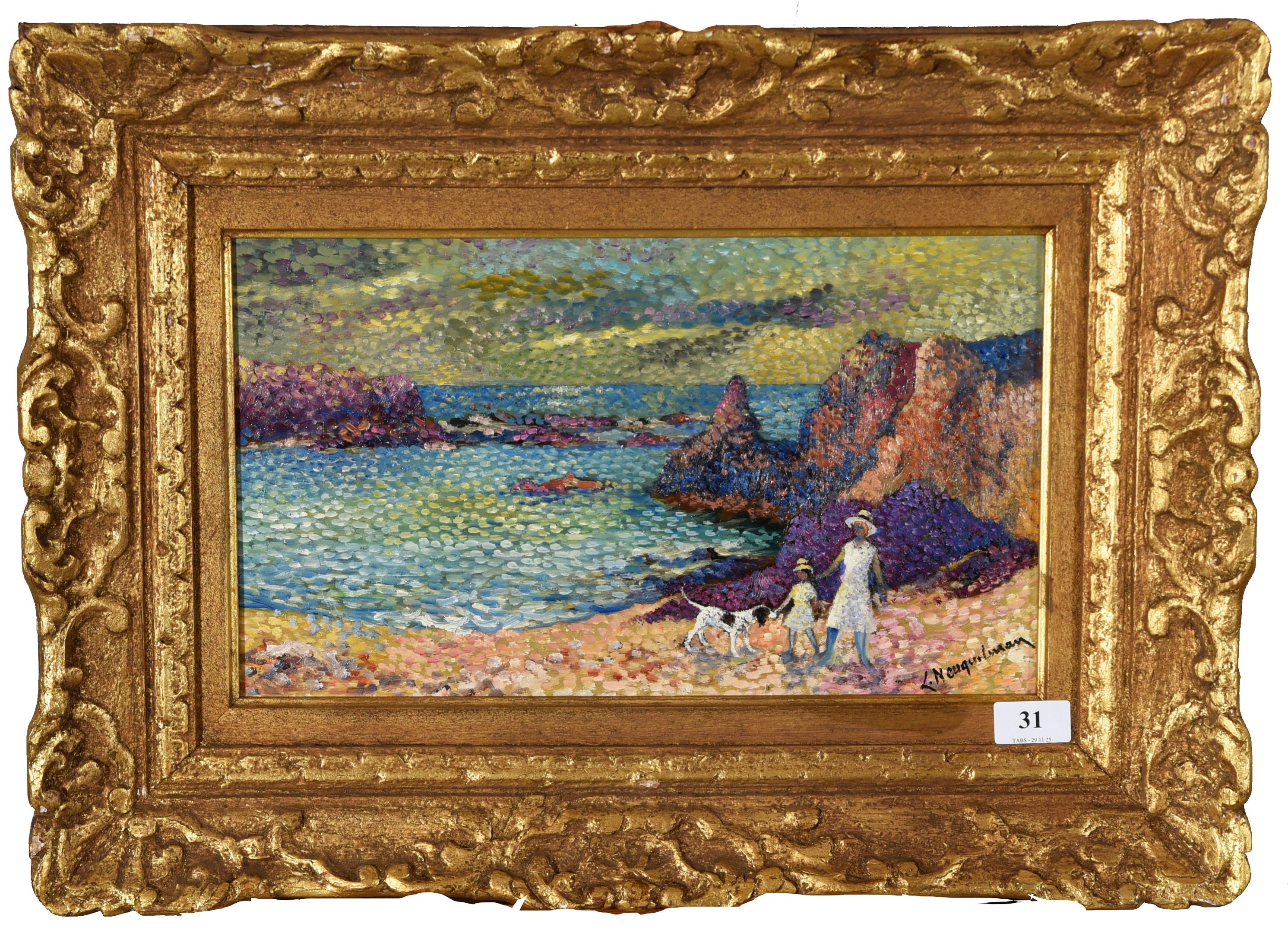 Lucien NEUQUELMANN (1865 - 1952) La Bretagne, randonnée à l’île de Bréhat, Hs panneau sbd, contresignée et titrée au verso, 24 x 41 cm