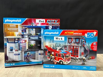 PLAYMOBIL Action Heroes : deux boîtes caserne et fourgon de …