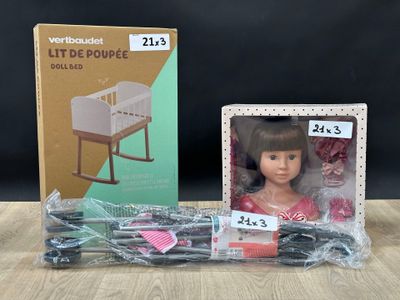 Réunion de : - VERTBAUDET - lit de poupée; - Tête à coiffer …