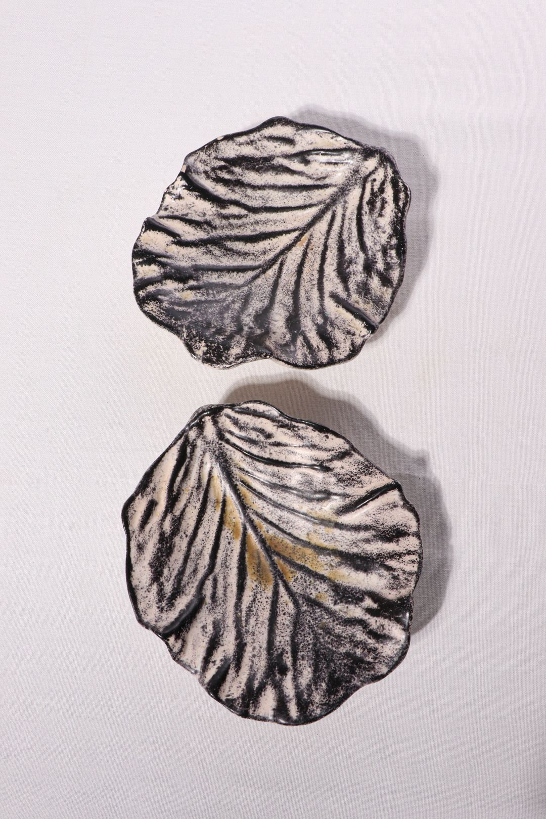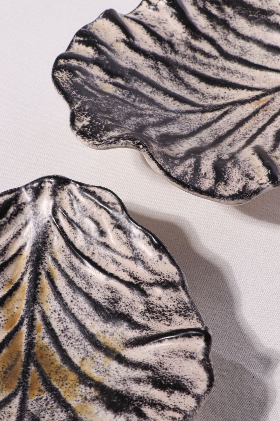Paire de coupes ou vide-poche 4 "Feuille" en faience émaillée à couverte polychrome