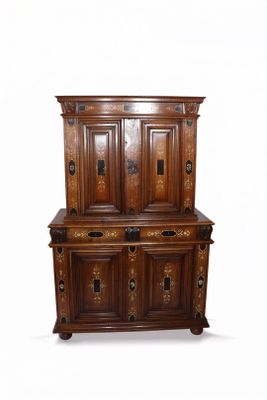 Buffet à deux corps en bois naturel mouluré, la partie supér…