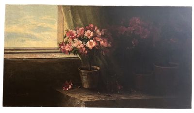 Hugo Charlemont (1850 - 1939), Pot de fleurs à la fenêtre, h…