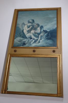 Trumeau en bois rechampi et doré à décor de fleurettes, la p…