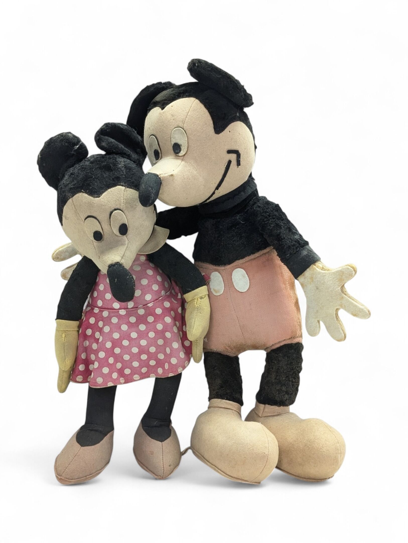 Mickey et Minnie Réunion de deux peluches vintage en paille …