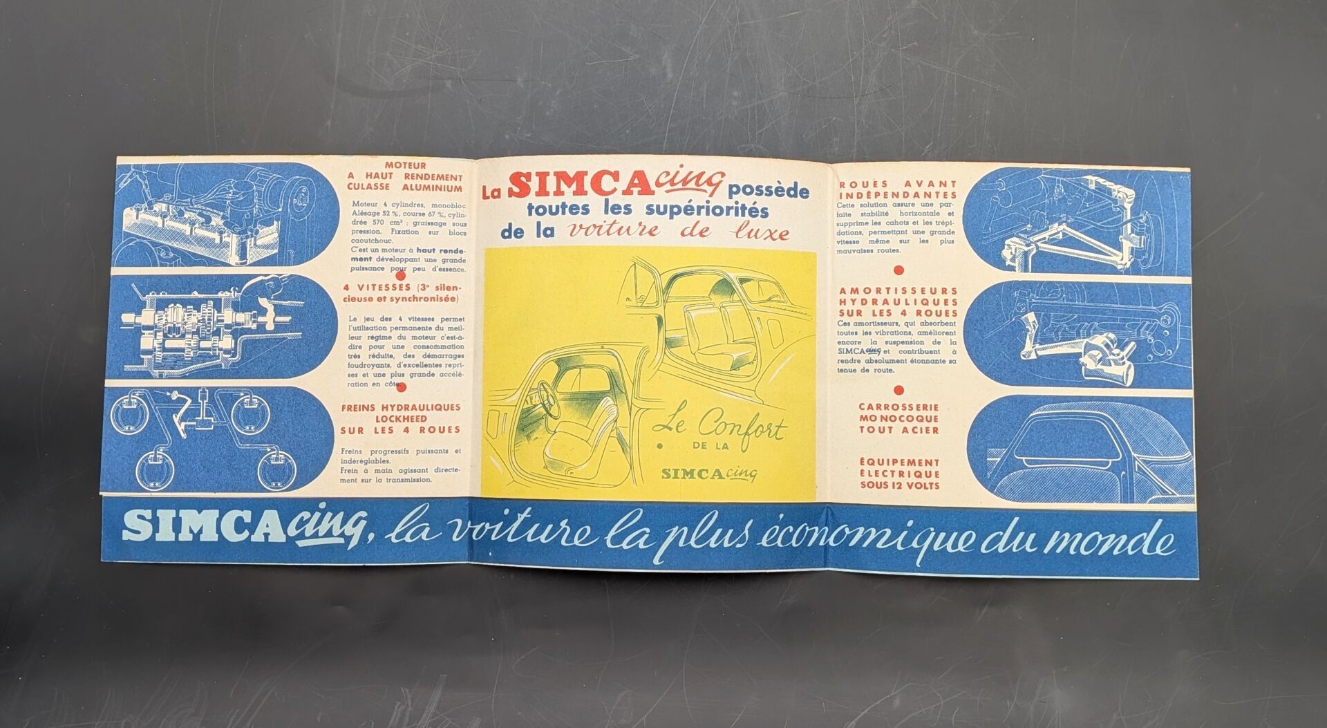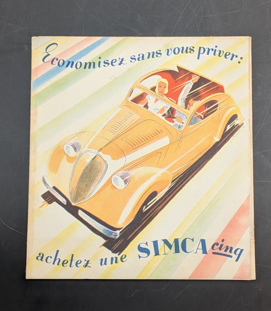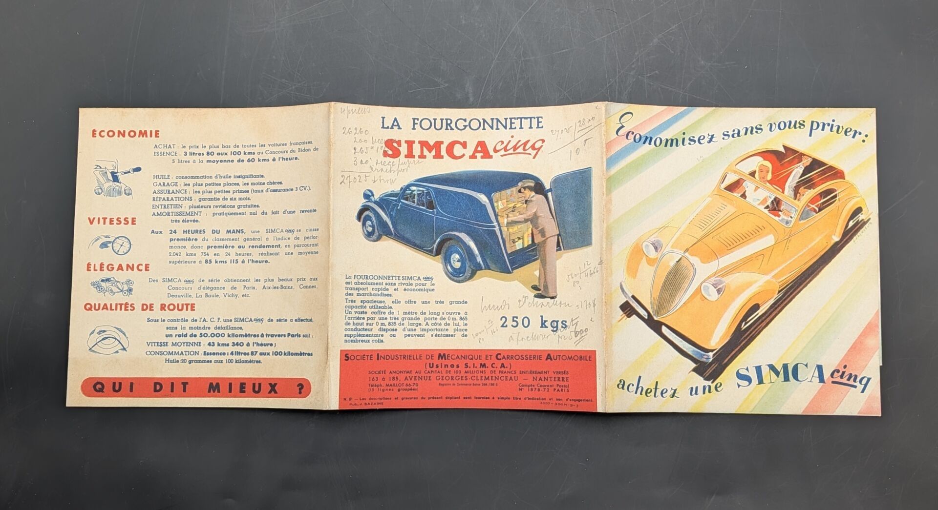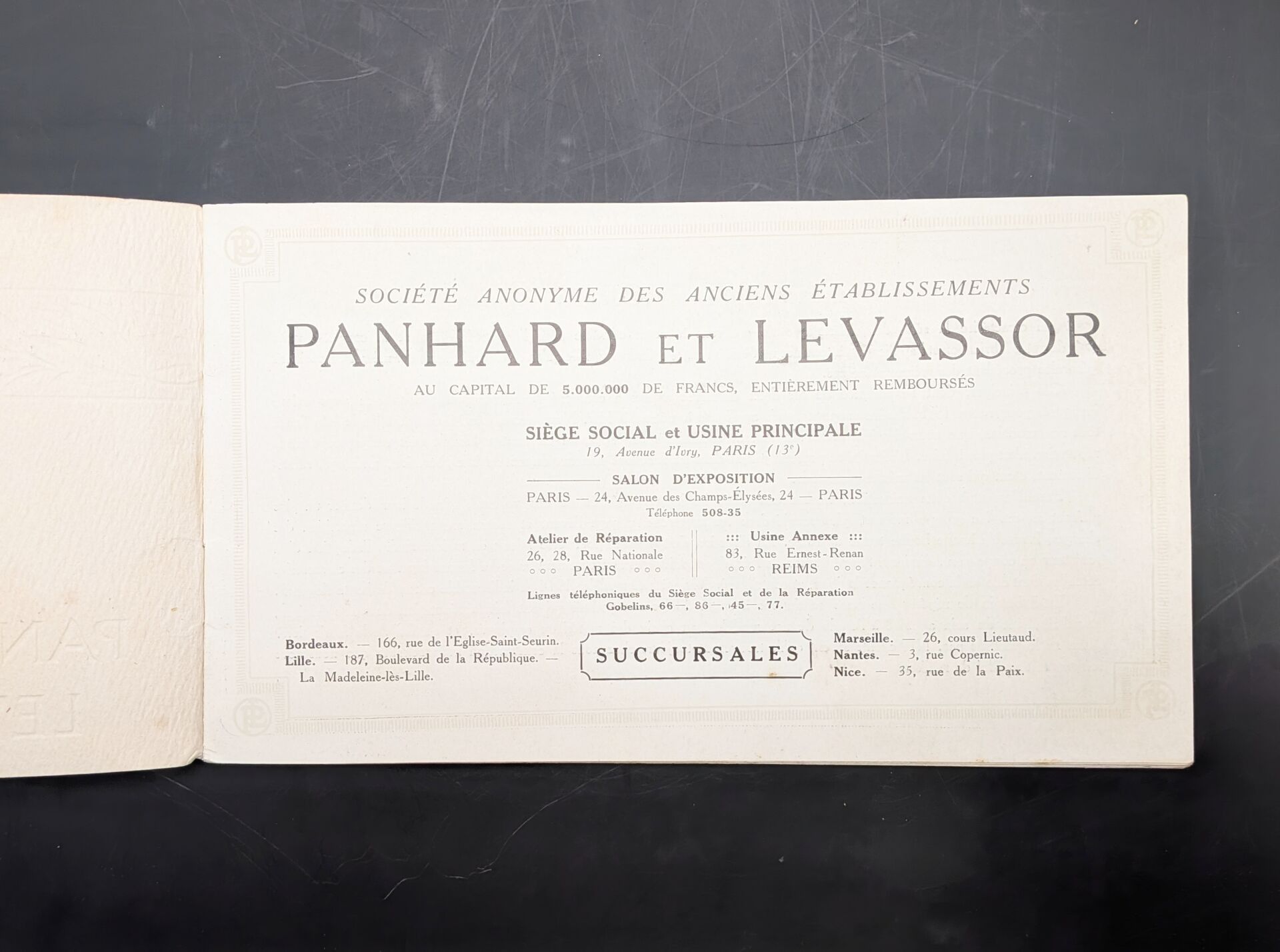 AUTOMOBILIA. Ensemble de 2 catalogues DELAGE D8.15, un catalogue PANHARD LEVASSOR 1914, un catalogue automobiles GREGOIRE 1909, un fascicule SIMCA 5