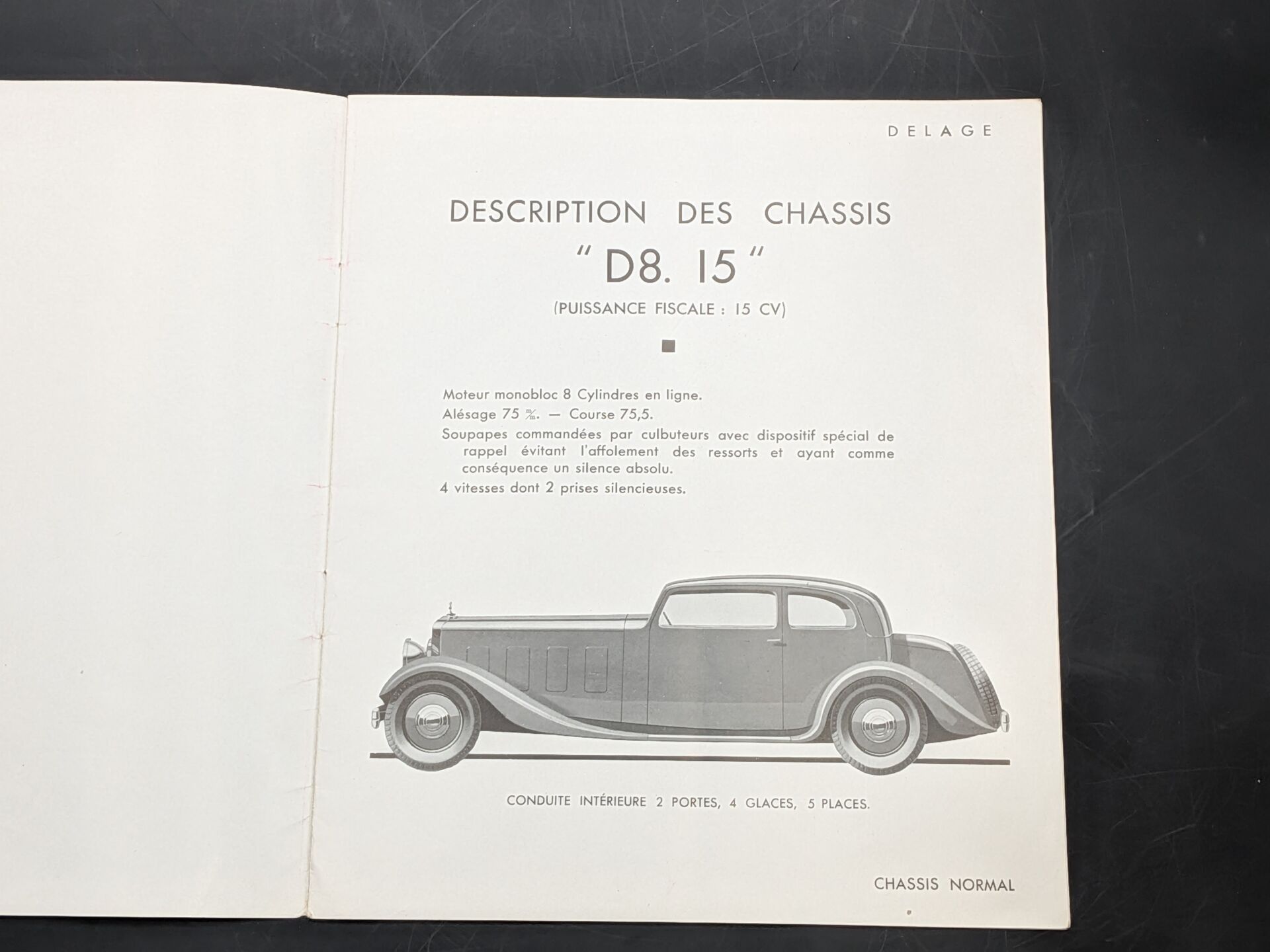 AUTOMOBILIA. Ensemble de 2 catalogues DELAGE D8.