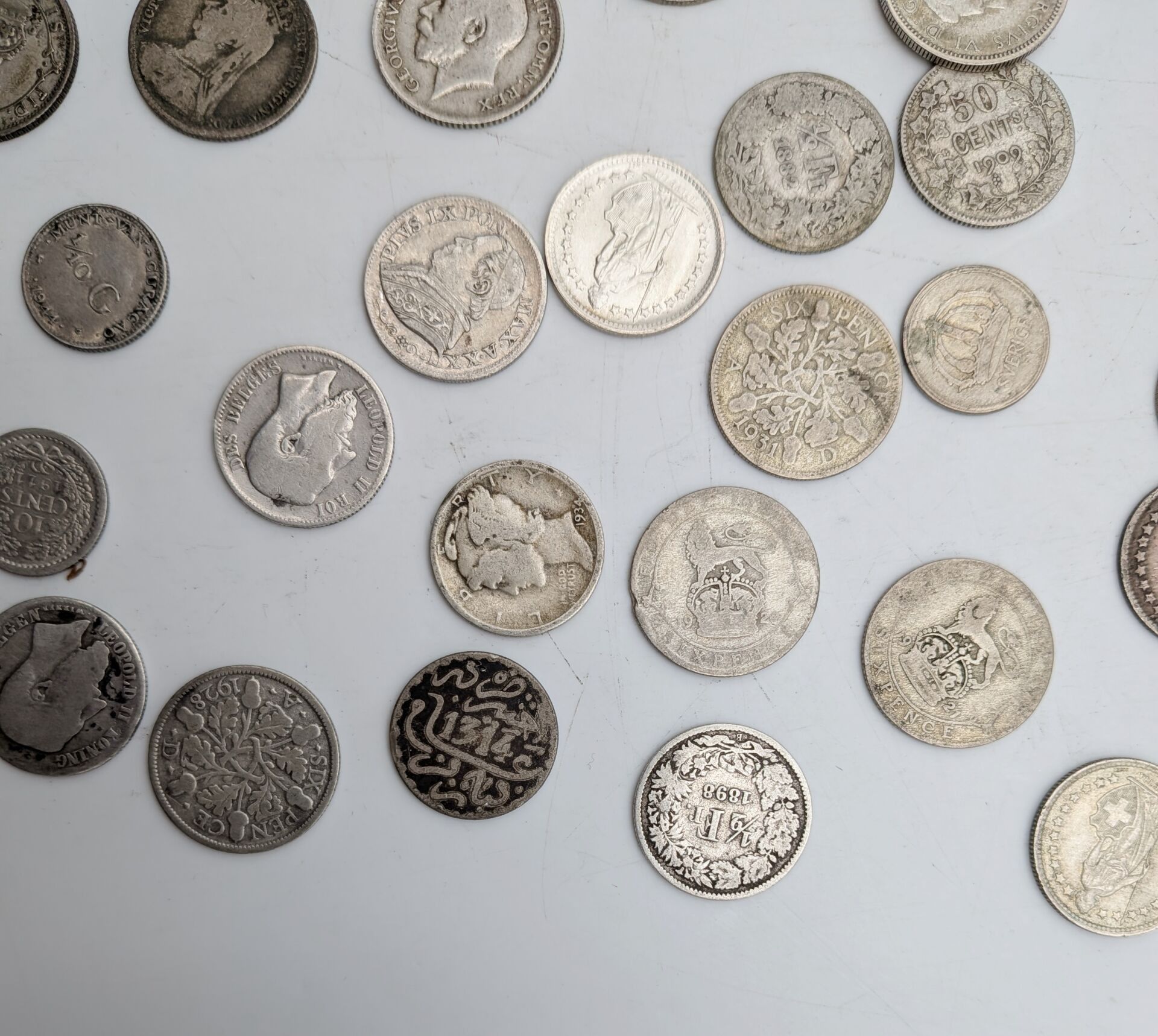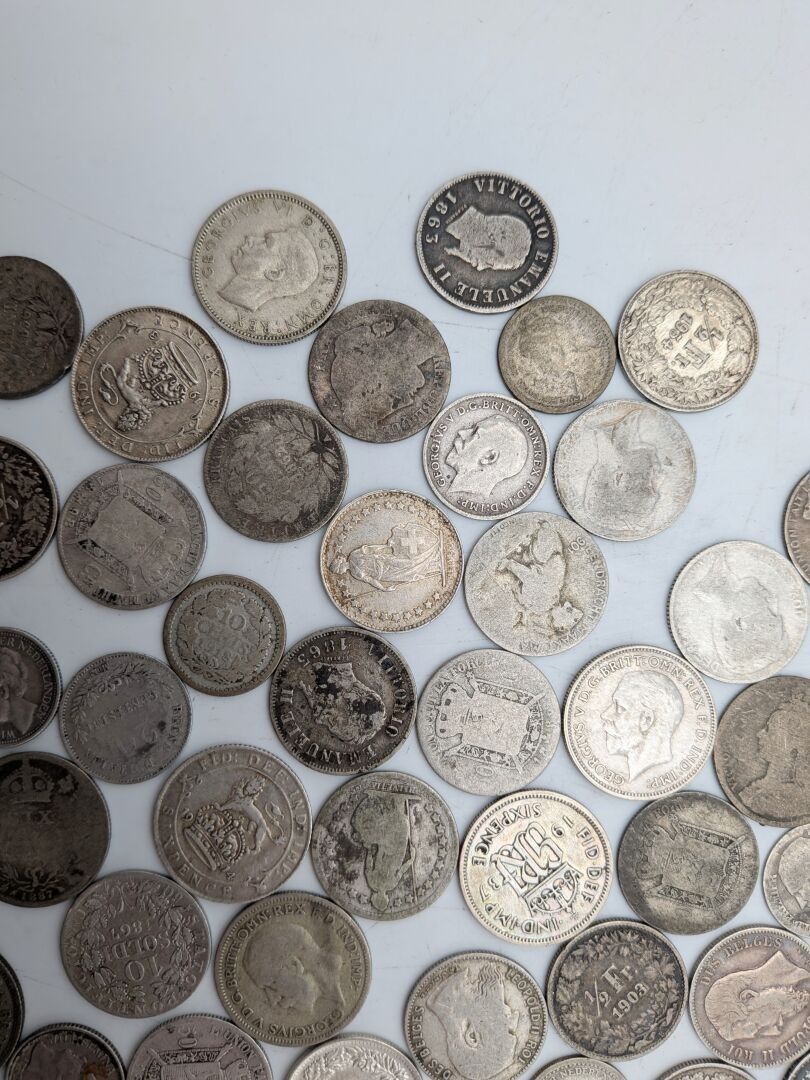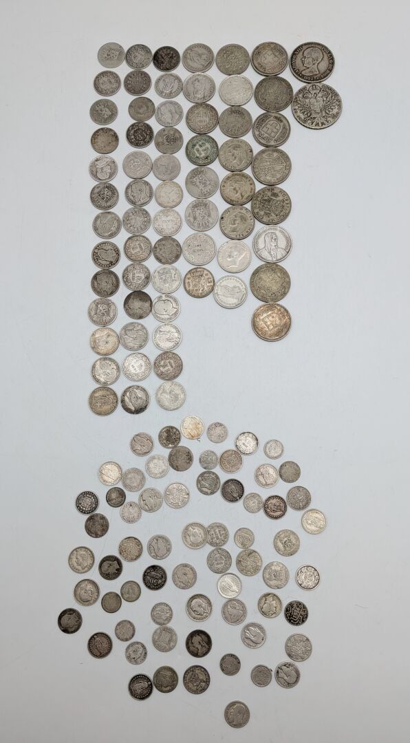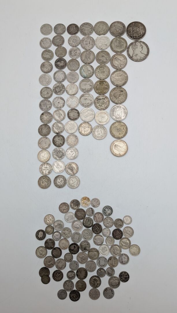 Lot de monnaies argent étrangères XIXème - XXème, tous pays, poids total 658g.