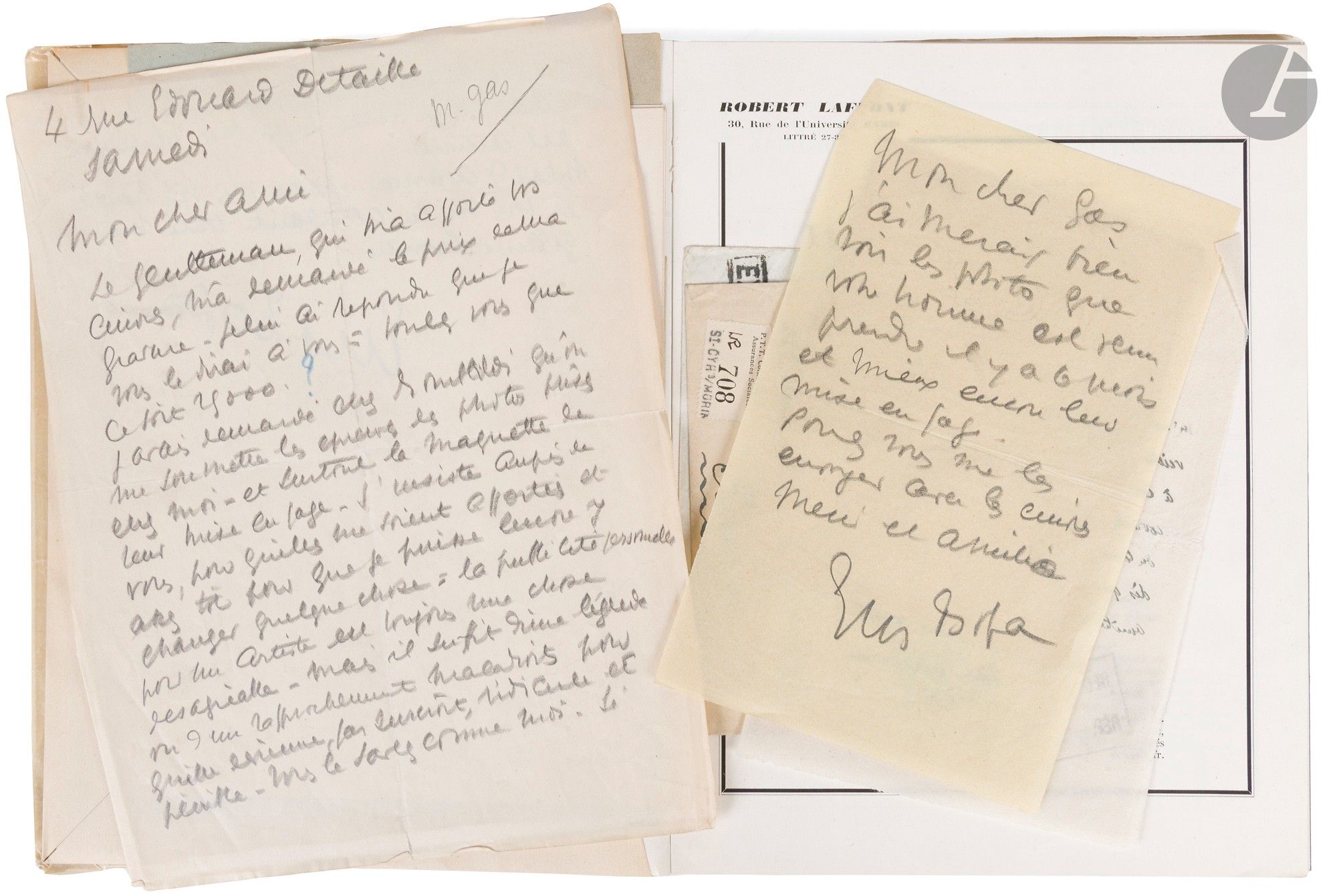 - Enveloppe autographe de Pierre Mac Orlan à l’adresse d’Éric de Grolier.