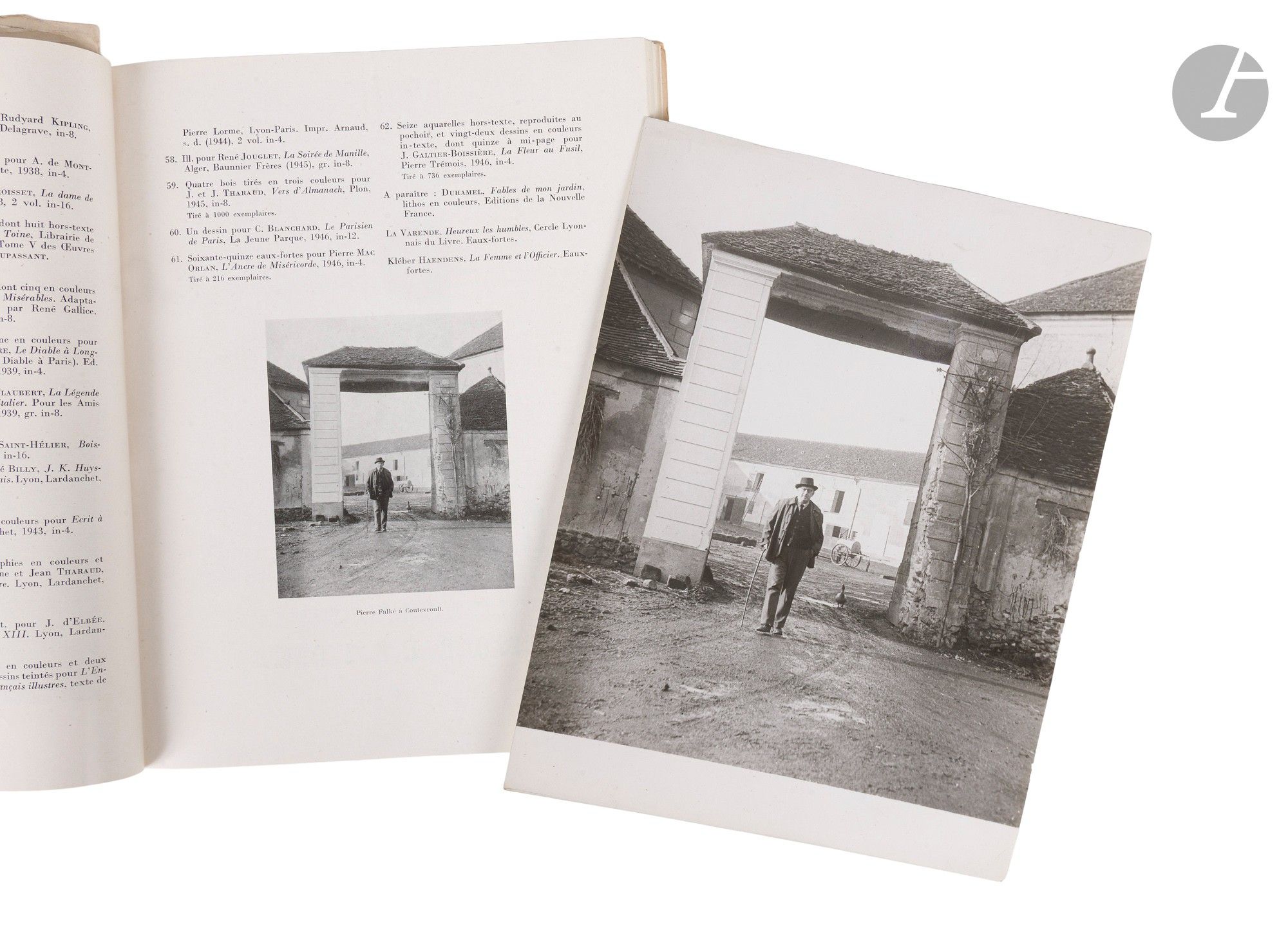 - 2 photographies originales de Pierre Falké par Guy Le Boyer, reproduites pages 27 et 41, avec le cachet du photographe au verso.
