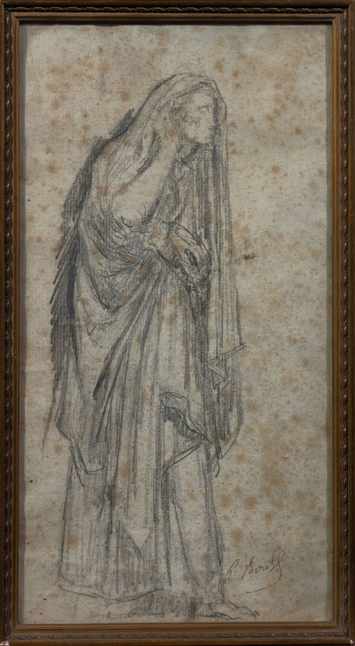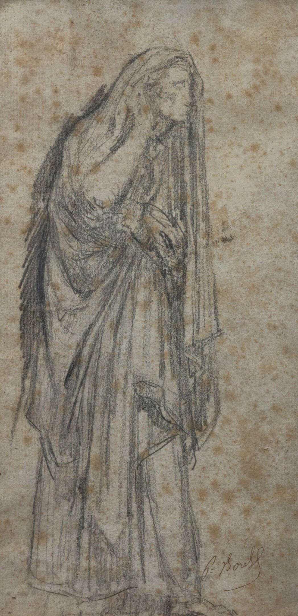 Paul BOREL (1828-1913) Figure drapée à l'antique Dessin à la mine de plomb, portant le cachet humide de la signature en bas à droite H. 28,5 cm - L. 15 cm (à vue) DV Rousseurs