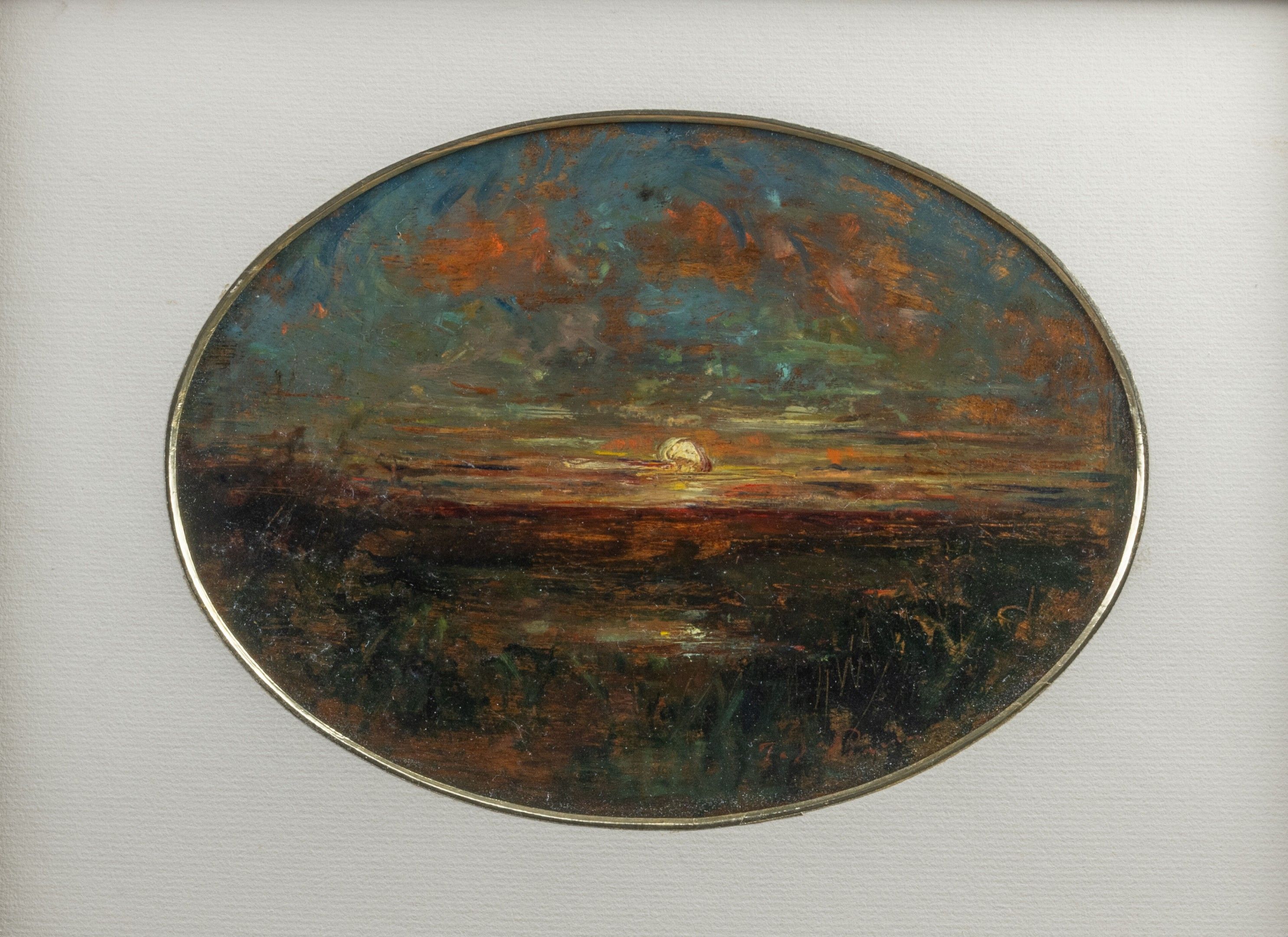 Huile sur panneau ovale, portant le cachet de la signature en bas à droite