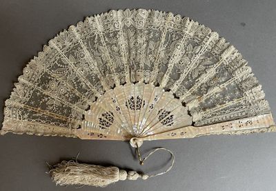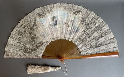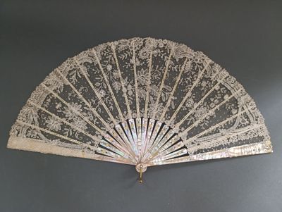 Dentelle à l'aiguille, Europe, vers 1890 Éventail plié, la f…