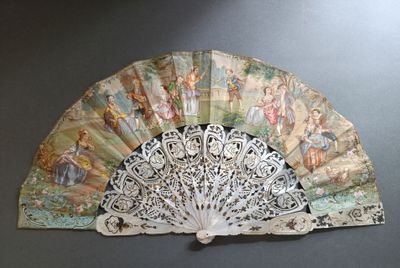 Les Bergers musiciens, Europe, vers 1850 Éventail plié, la f…