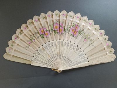 Décor de fleurs, France, vers 1860-1870 Éventail de type bri…