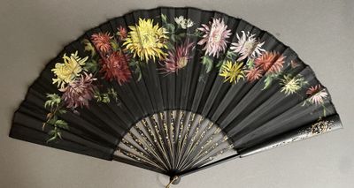 Dahlias, France, vers 1890 Éventail plié, la feuille en gaze…