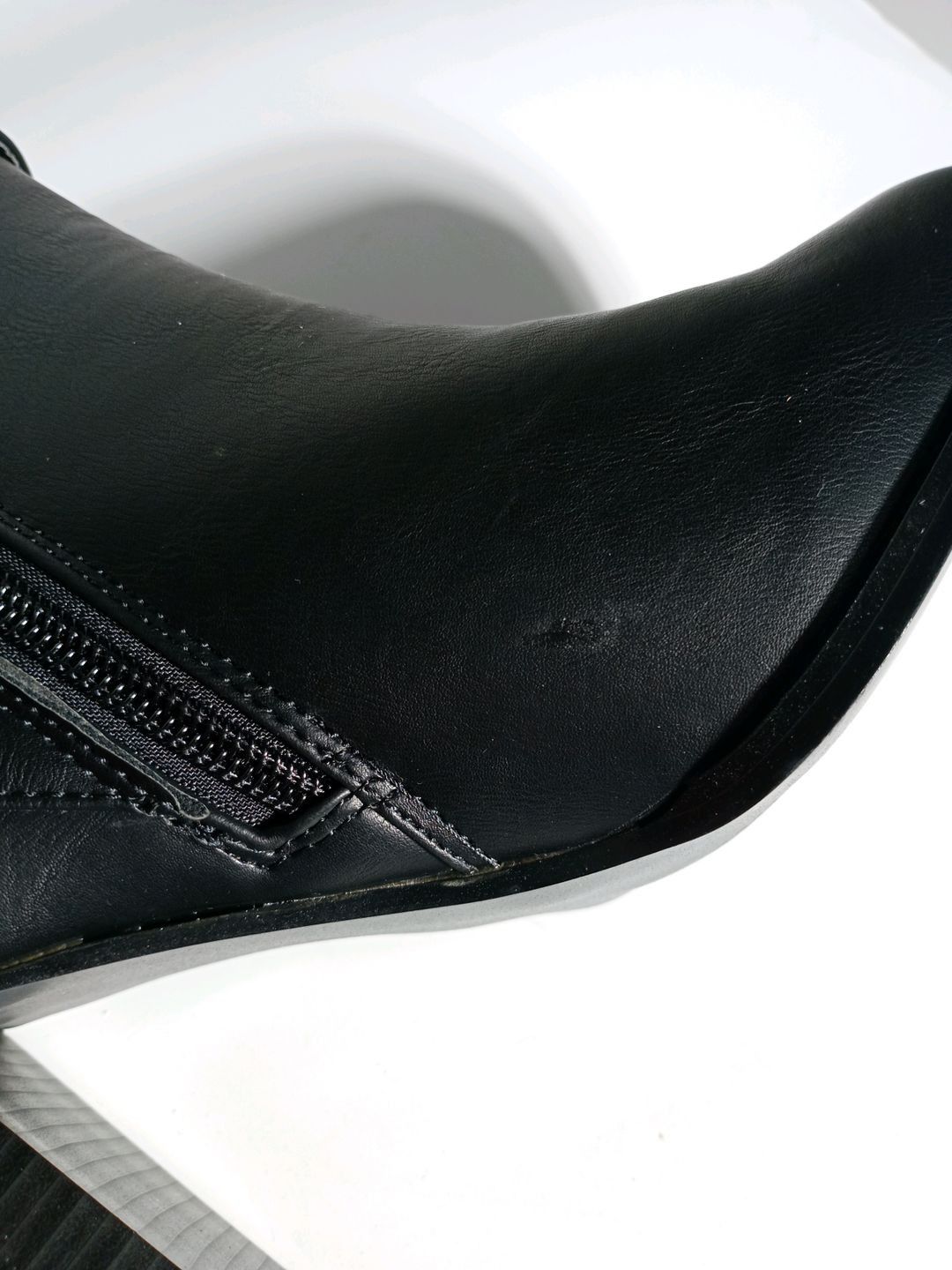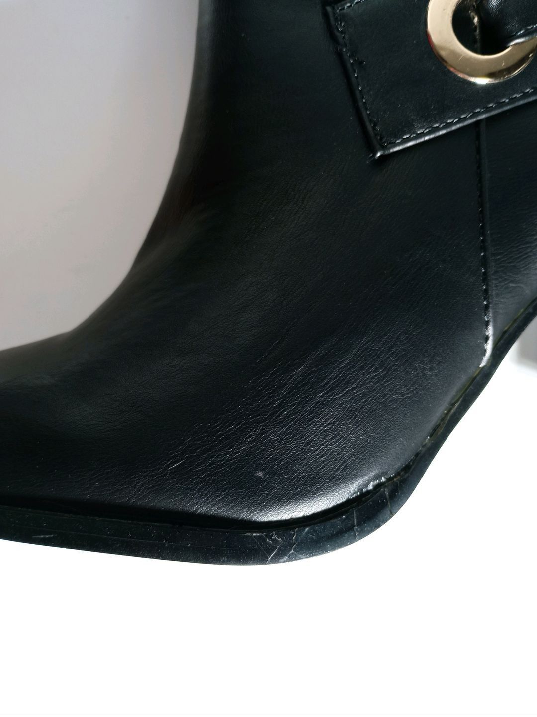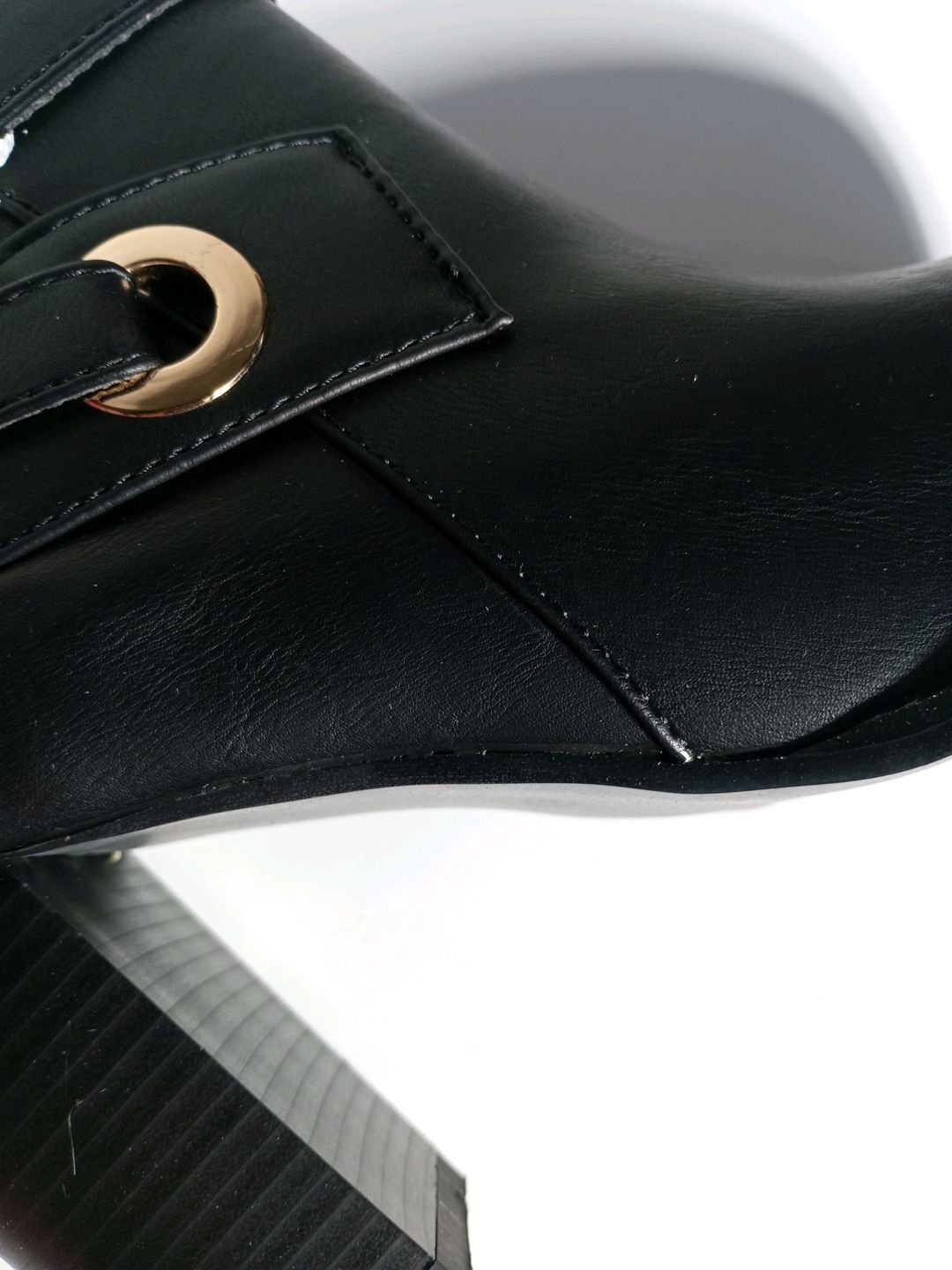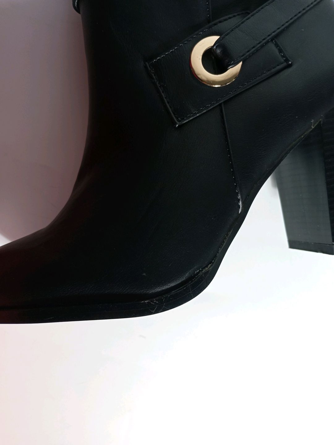 Bottines à talons en similicuir couleur noir et detail doré - SHOEDAZZLE - pointure 40.5 - petits défauts de fabrication visible sur les photos - Neuf - TVA Récupérable - Ce lot chez vous partout en France métropolitaine à partir de 12,24 € - Ce lot chez vous partout en Europe à partir de 18,00 €