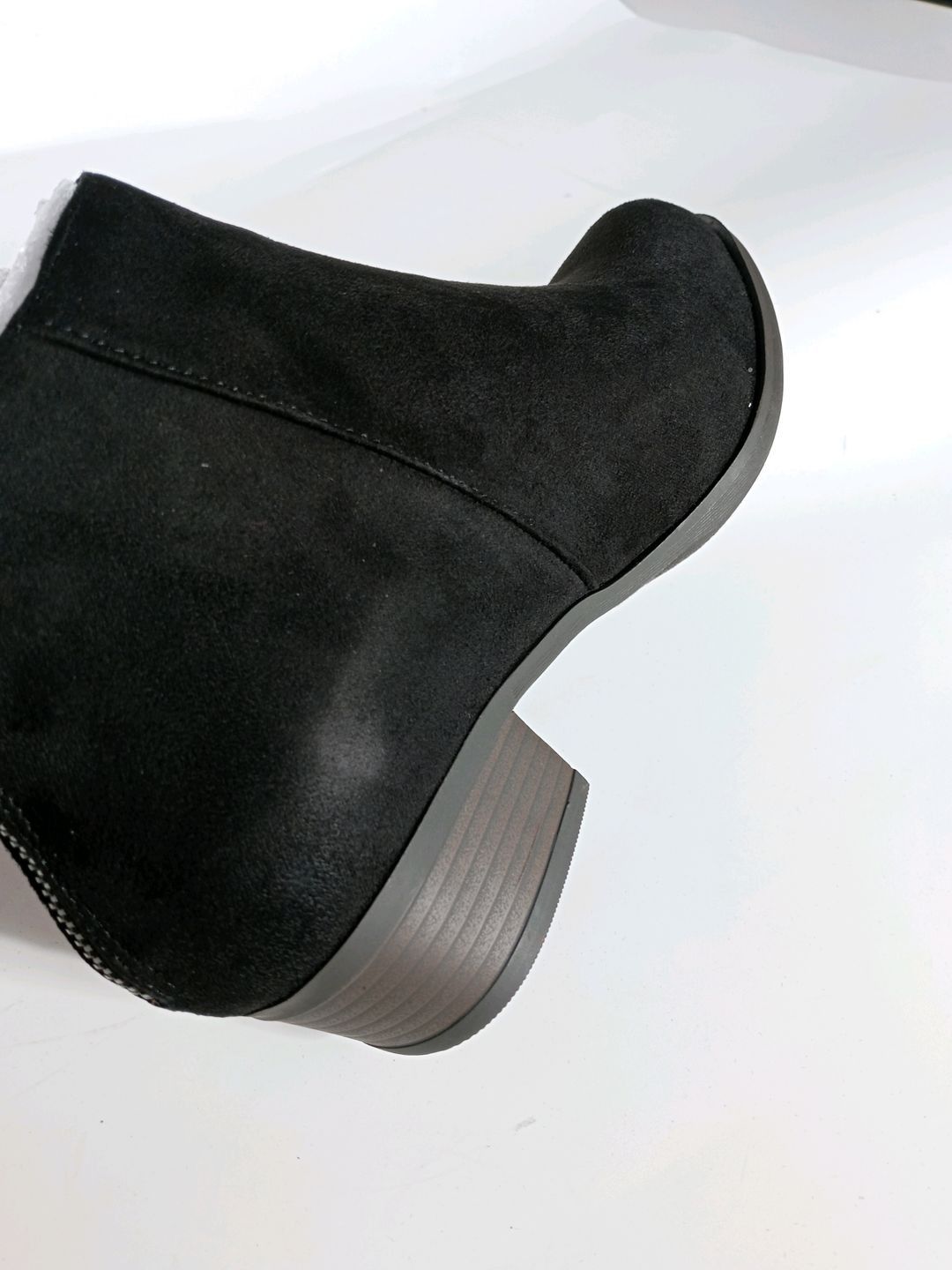 Bottines en suédine couleur noir - JUSTFAB - pointure 37.5 - petits défauts de fabrication visible sur les photos - Neuf - TVA Récupérable - Ce lot chez vous partout en France métropolitaine à partir de 12,24 € - Ce lot chez vous partout en Europe à partir de 18,00 €