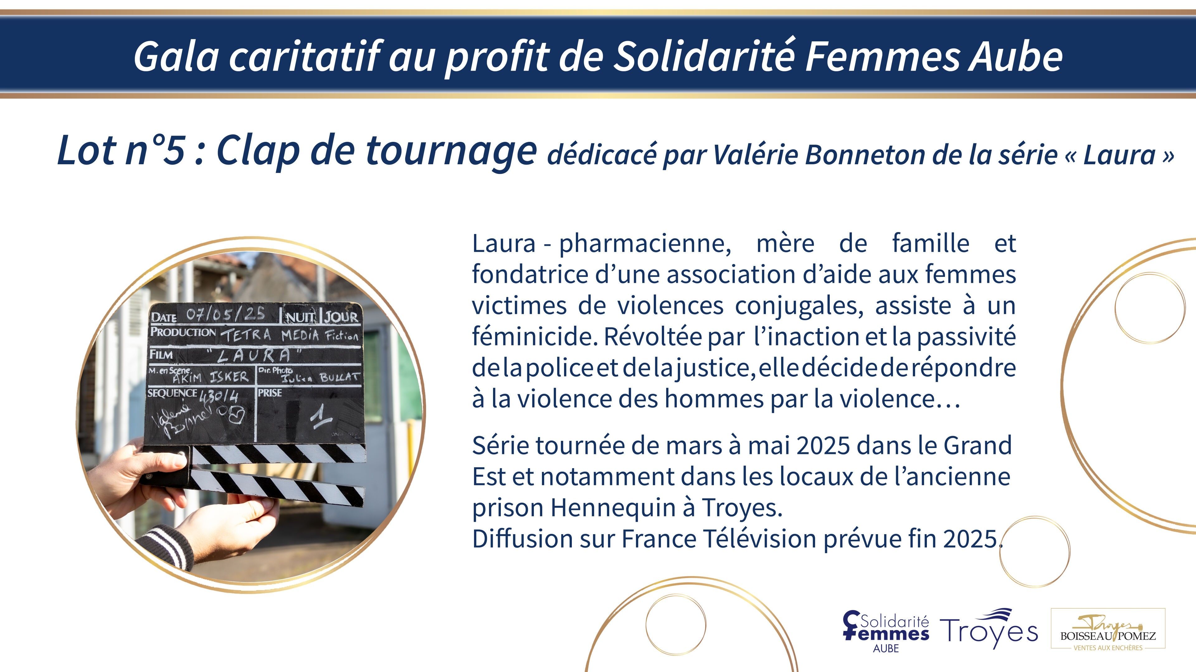 MISE A PRIX 1€ - Clap de tournage dédicacé par Valérie Bonneton de la série « Laura »
