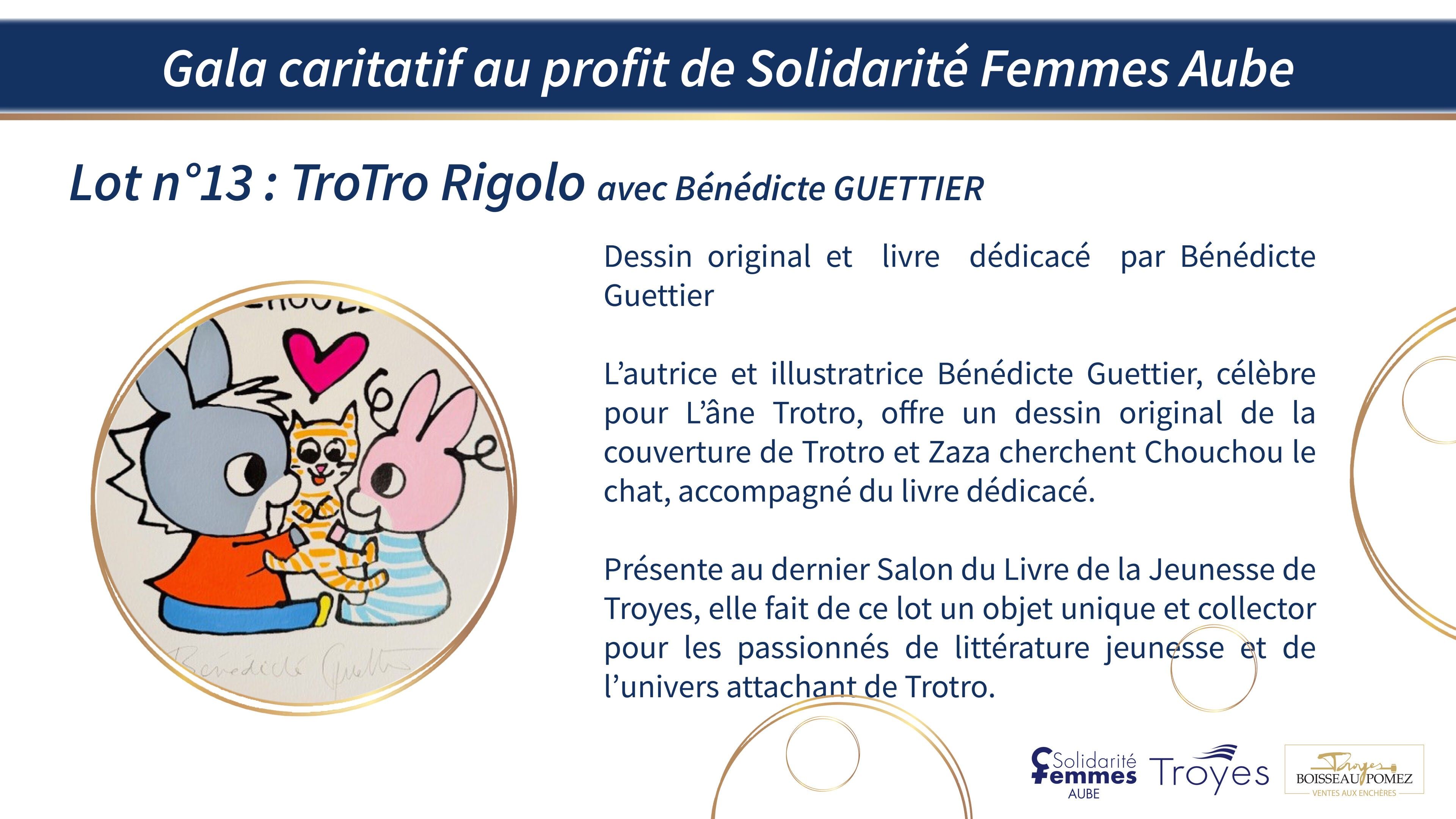 Présente au dernier Salon du Livre de la Jeunesse de Troyes, elle fait de ce lot un objet unique et collector pour les passionnés de littérature jeunesse et de l'univers attachant de Trotro.
