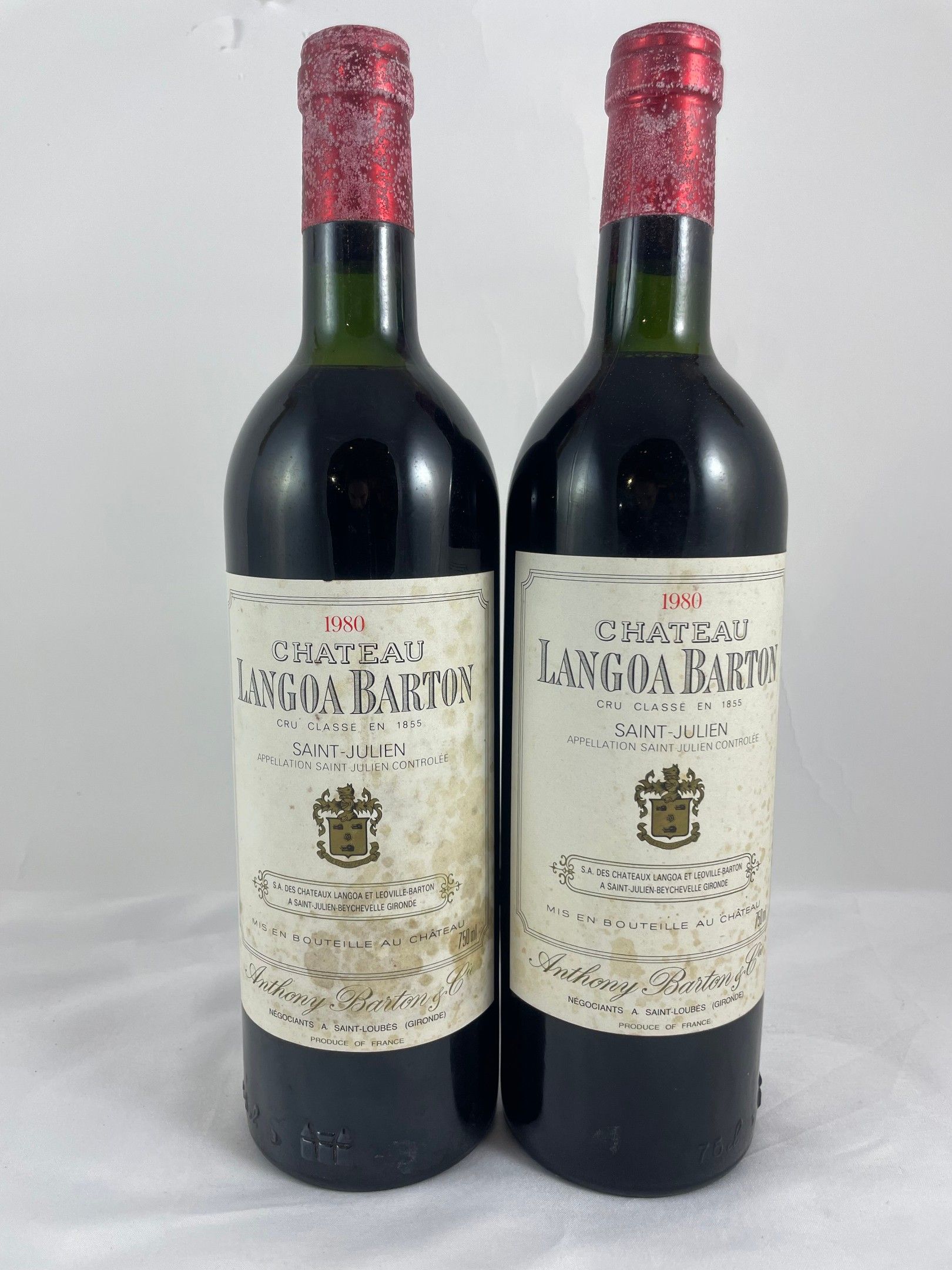 2 btls Château Langoa Barton 1980 - Saint-Julien (ET, capsules légèrement abîmées - TVA récupérable)