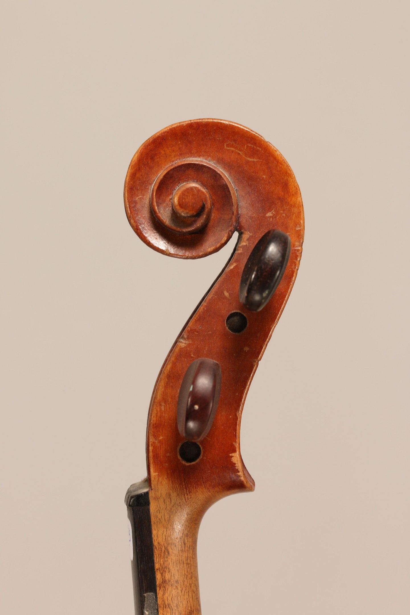 Violon de la maison JÉRÔME THIBOUVILLE-LAMY fait à Mirecourt, début XXème ; portant étiquette apocryphe Stradivarius et marque au fer J.T.L. sur le tasseau. Assez bon état. 357mm. [VREXP2] This instrument is more than 100 years old.