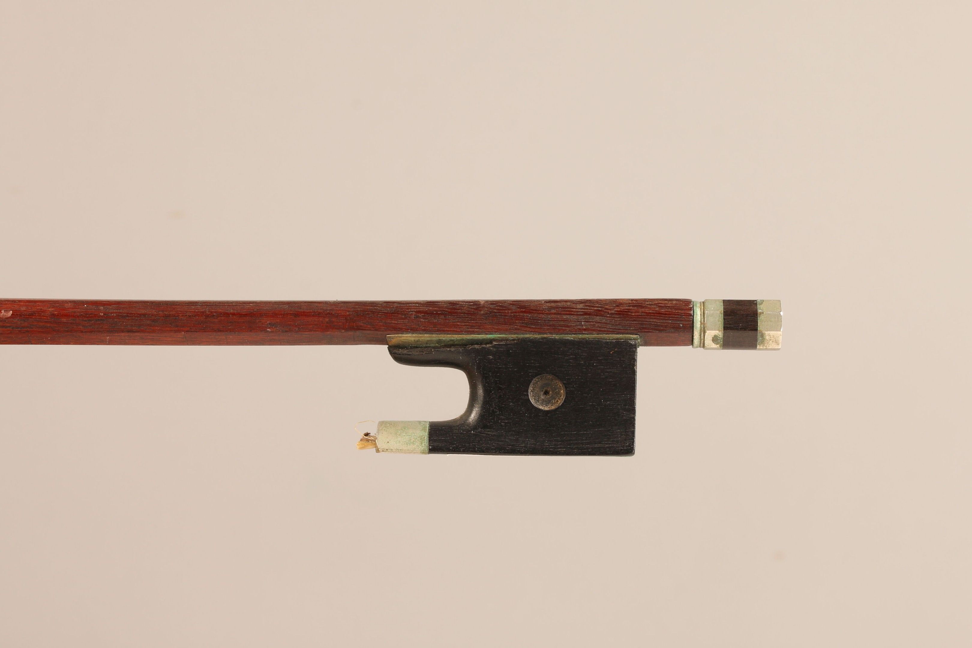 Archet de violon de Pierre CUNIOT, monté maillechort. Éclat et fente à la hausse. 47g1 sans mèche ni garniture.