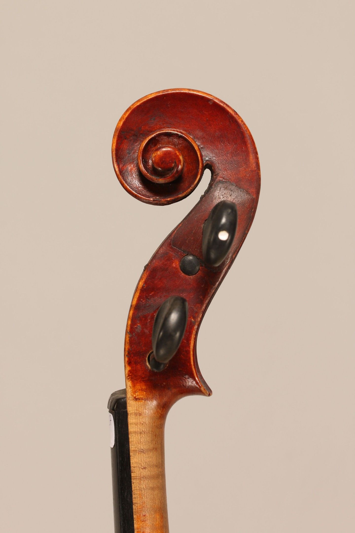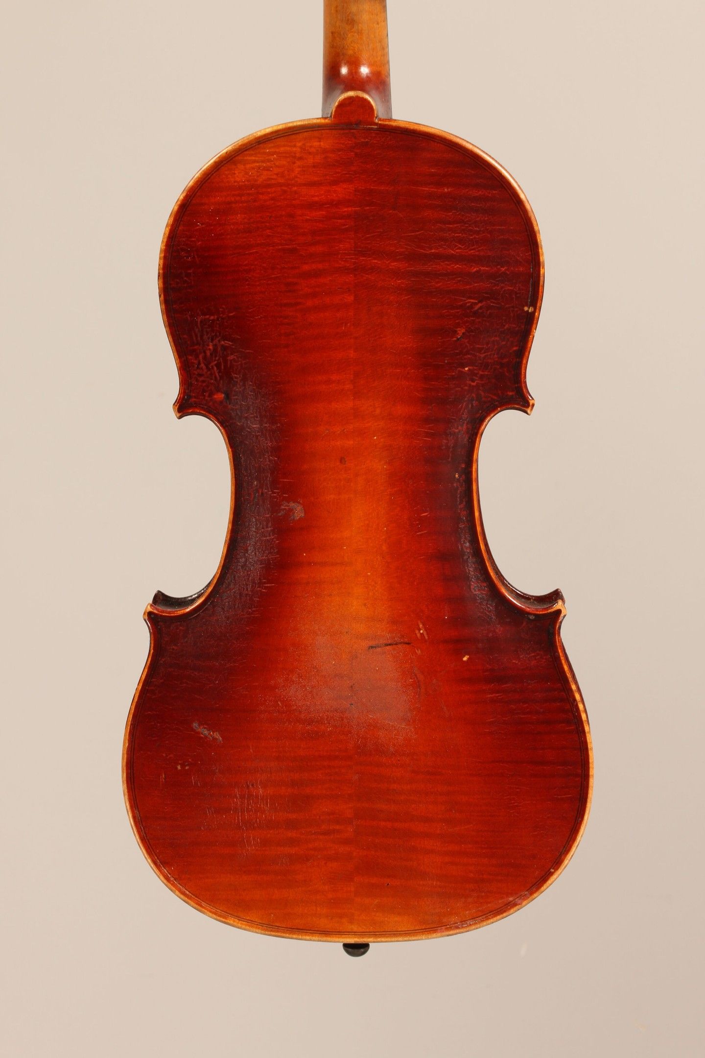 Violon de l'école Allemande, seconde partie du XVIIIème ; portant étiquette illisible et signature de restauration sur la table. Tête restaurée. 360mm. This instrument is more than 100 years old. [VREXP3]