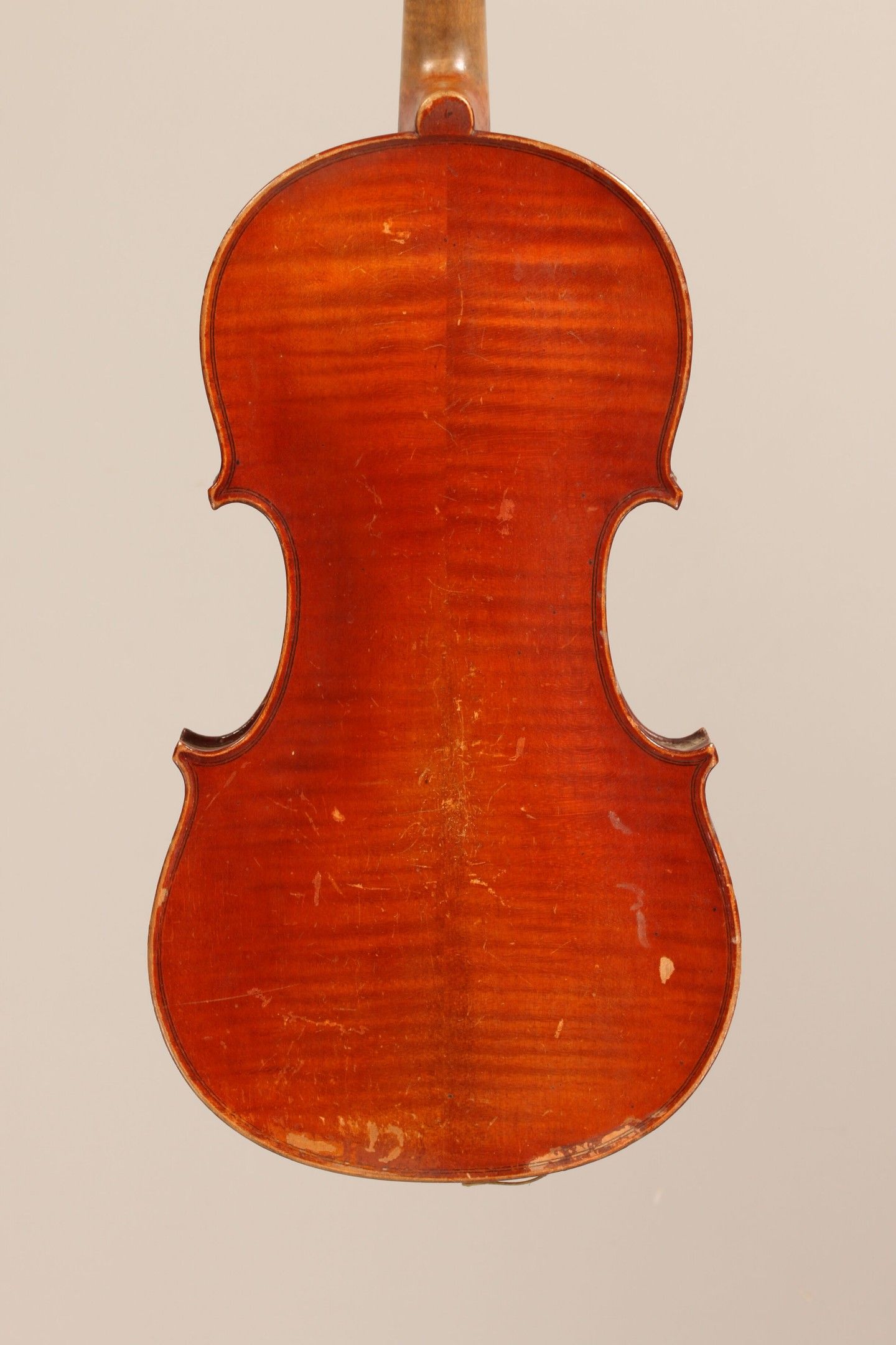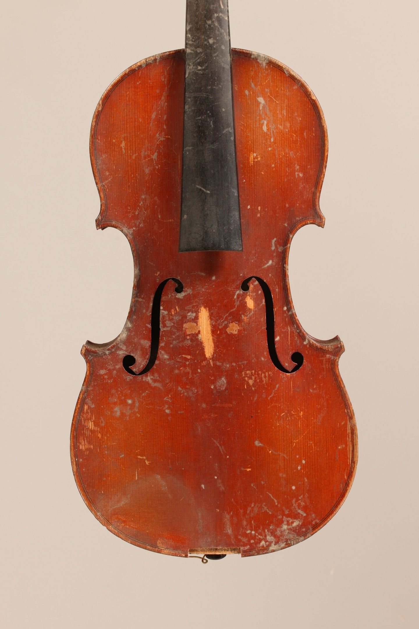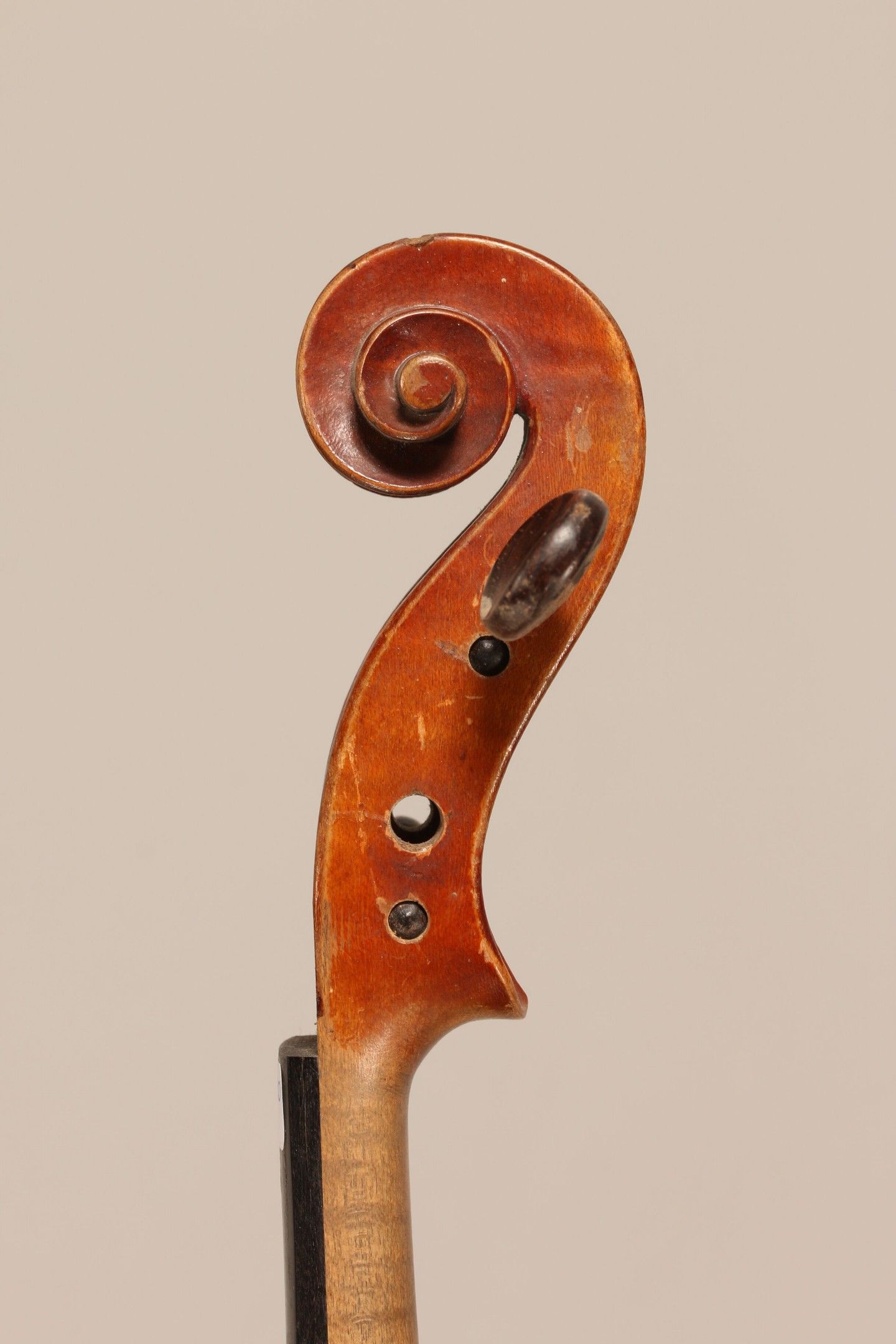 Violon Français, fait à Mirecourt début XXème, fini et vendu par Christian Olivier et Paul Bisch à Paris ; portant étiquette de Christian Olivier et Paul Bisch. Petites cassures et usure sur la table. 357mm. This instrument is more than 100 years old. [VREXP3]