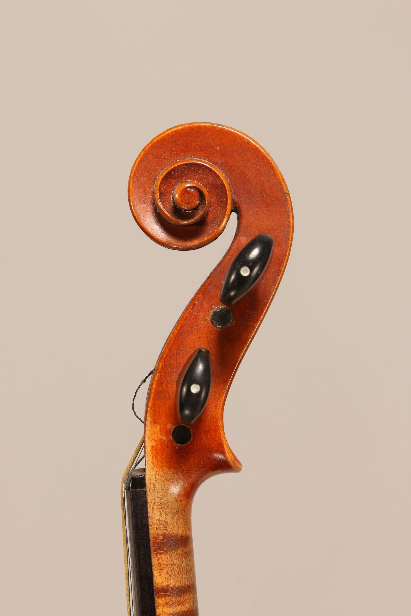 Violon de la Maison JÉRÔME THIBOUVILLE-LAMY, fait à Mirecourt début XXème, en modèle Breton ; portant étiquette et marque au fer de Breton, et marque au fer J.T.L. sur le tasseau. Assez bon état. 359mm. This instrument is more than 100 years old. [VREXP2]