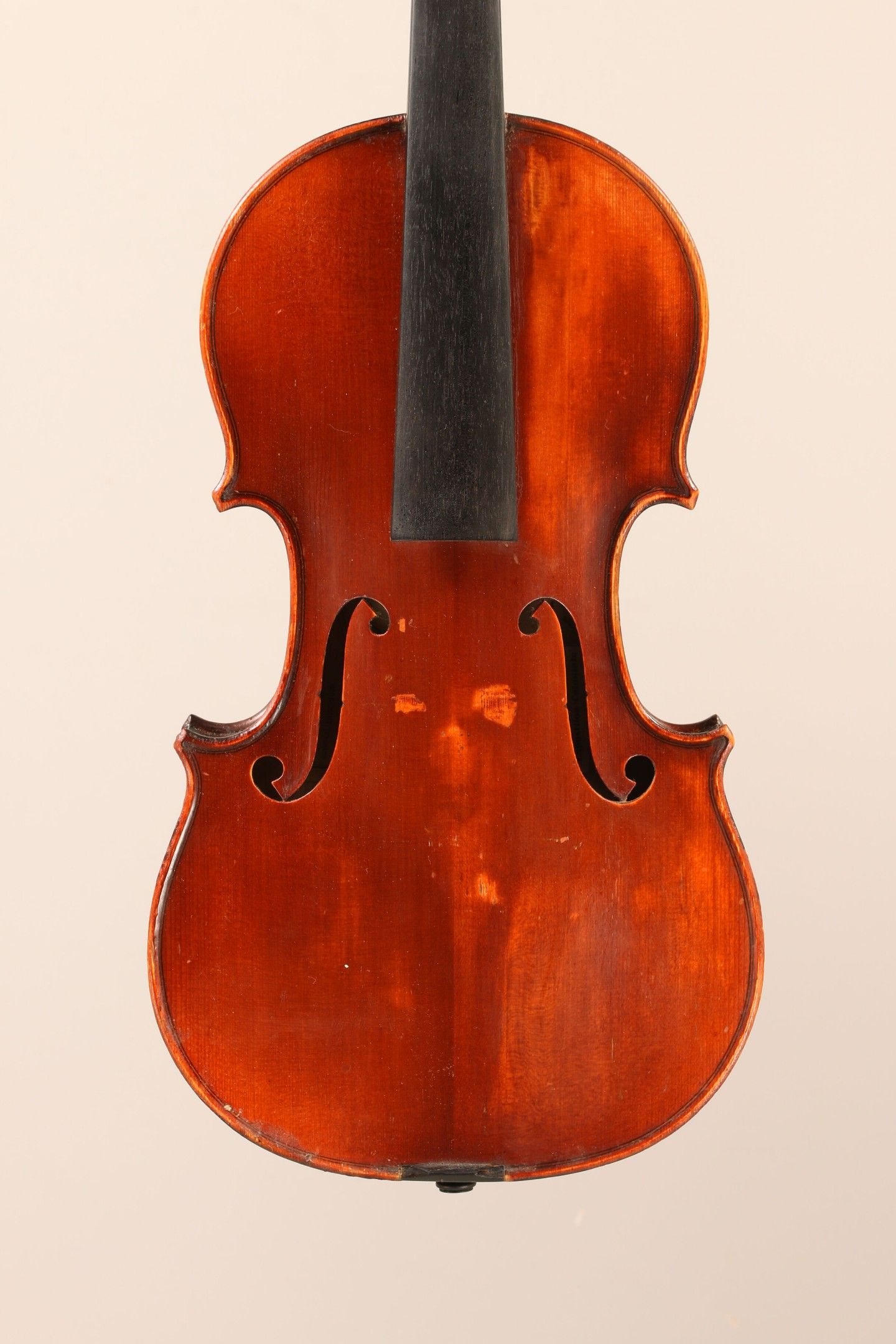 Violon de la maison LABERTE, fait à Mirecourt vers 1930-1935 ; portant étiquette Paul Mangenot. Vernis abimé sur la table. 358mm. [VREXP2]