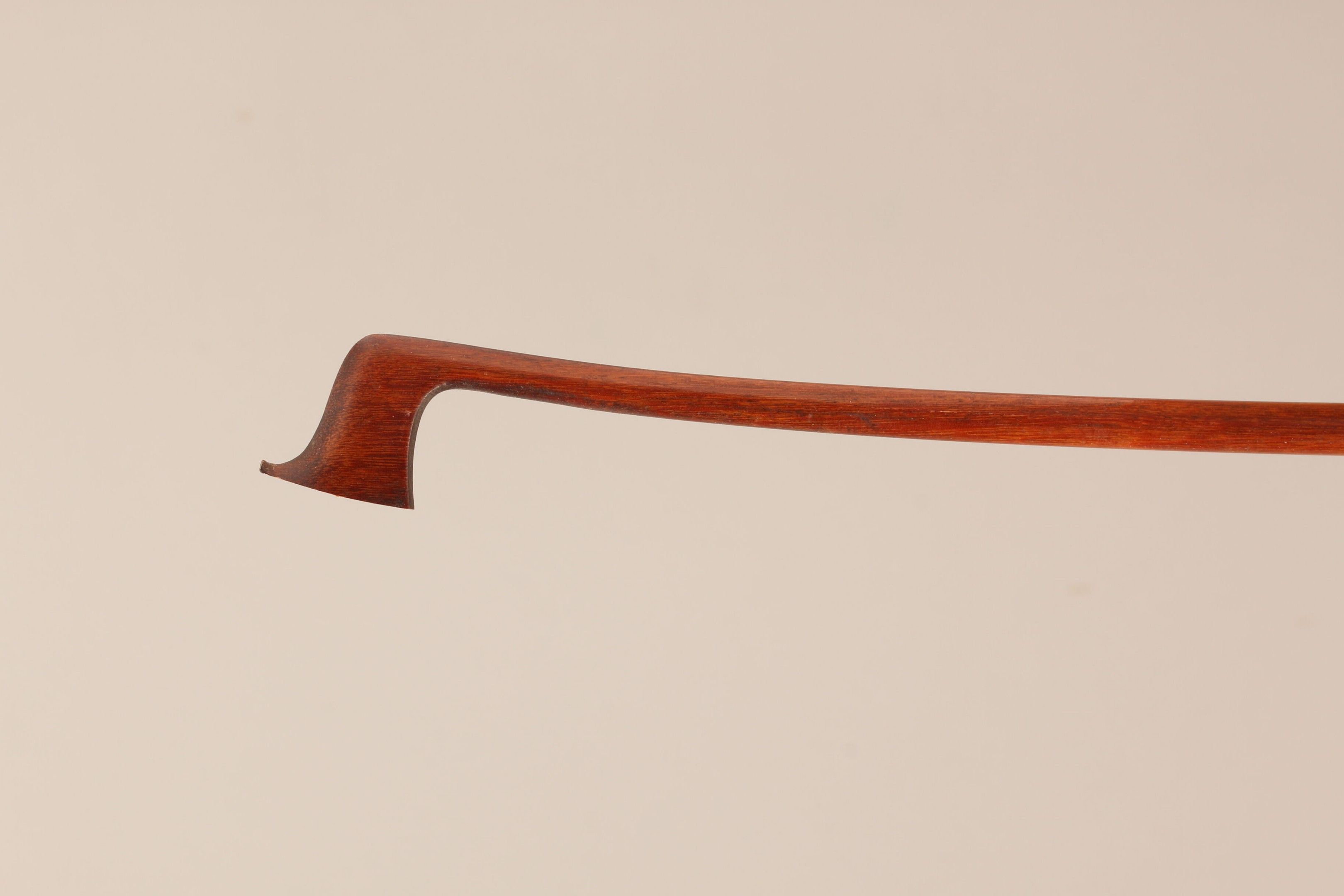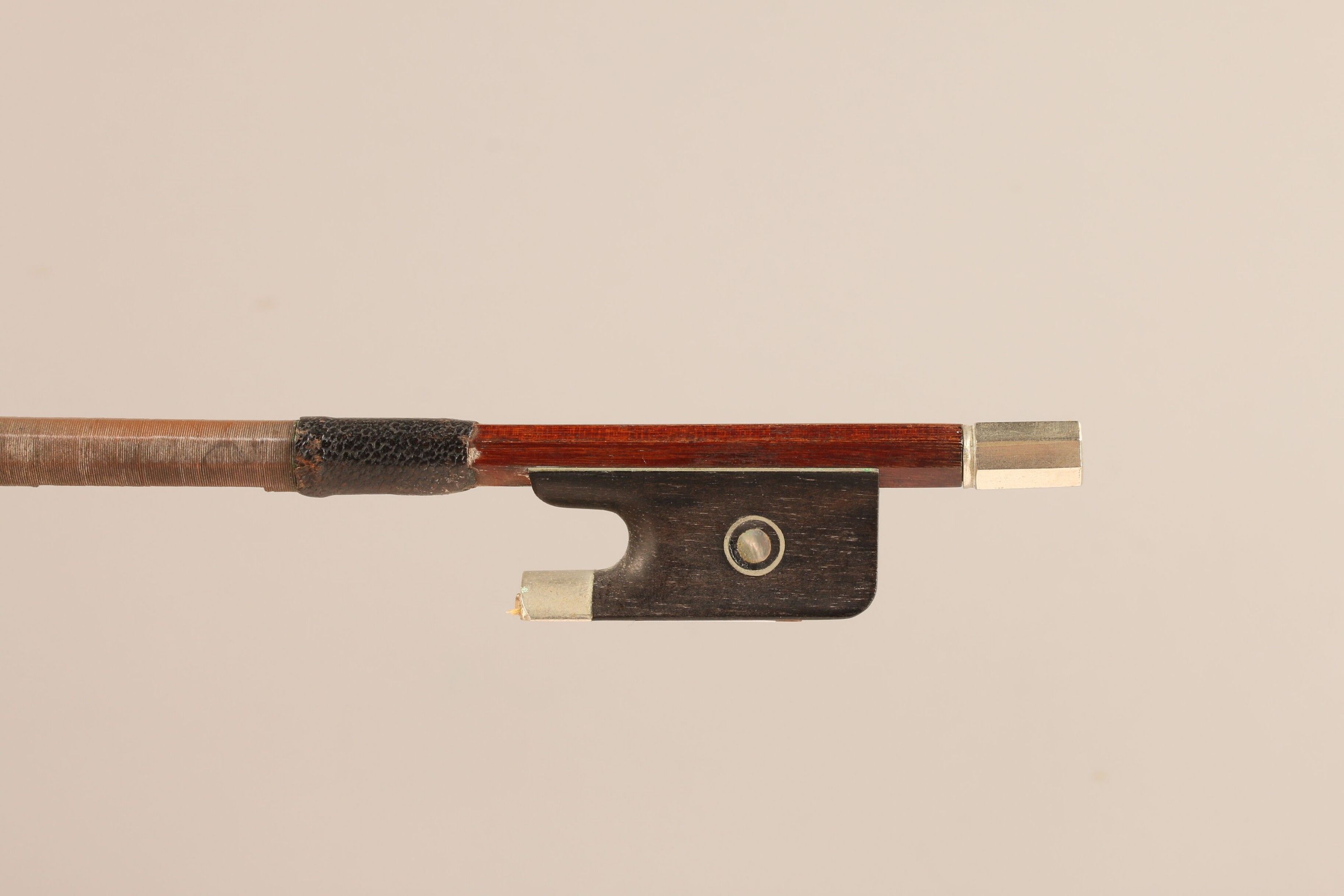 Archet de violon Mirecourt XXème, monté maillechort. Bon état. 48g sans mèche.