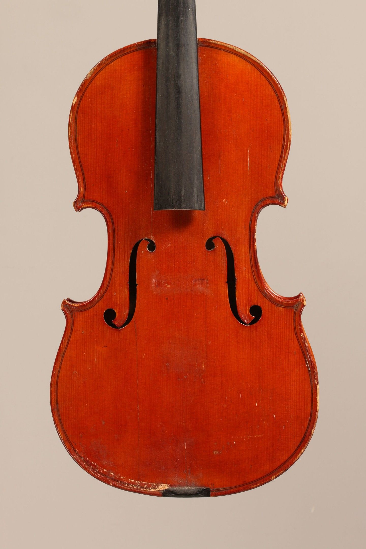 Violon grande taille de Antoine BRUBACH, fait à Rouen en 1889, pour la maison Hausemesser and Cie ; portant étiquette Haumesser and Cie, Rouen, et signature sur l'éclisse arrière d'Antoine Brubach. Différentes cassures sur la table dont cassure d'âme. 369mm. This instrument is more than 100 years old. [VREXP1]