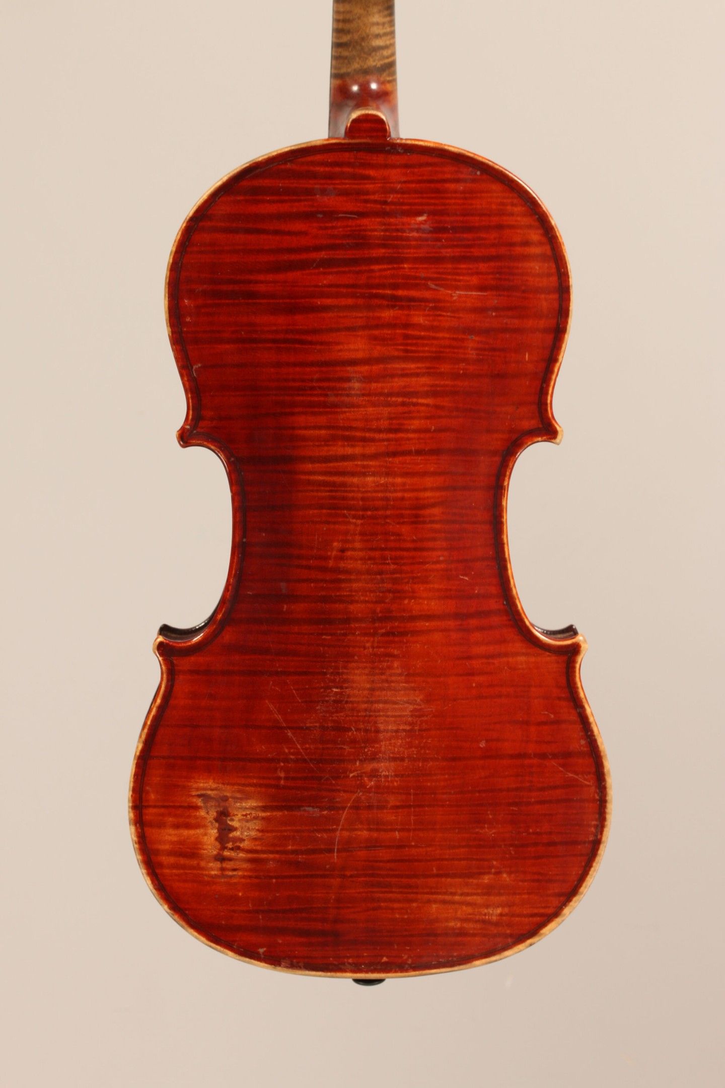 Violon de la maison JÉRÔME THIBOUVILLE-LAMY, fait à Mirecourt vers 1890 ; portant marque au fer Nicolas Duchêne. Petite cassure sur le fond, éclat à la tête. 359mm. This instrument is more than 100 years old. [VREXP2]