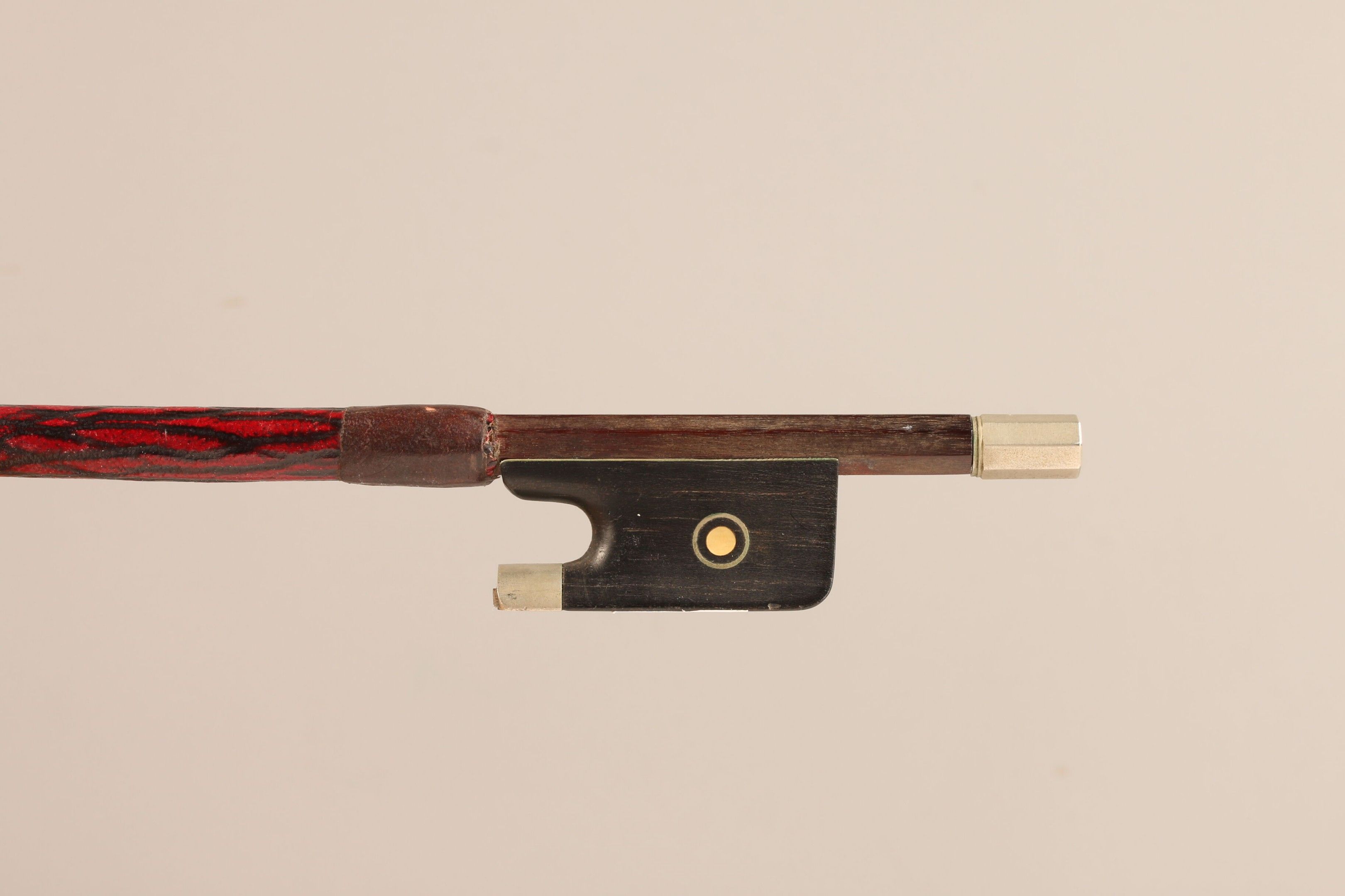 Archet de violon de MORIZOT Frères, monté maillechort. Petit nœud milieu baguette. 56g7 sans mèche.