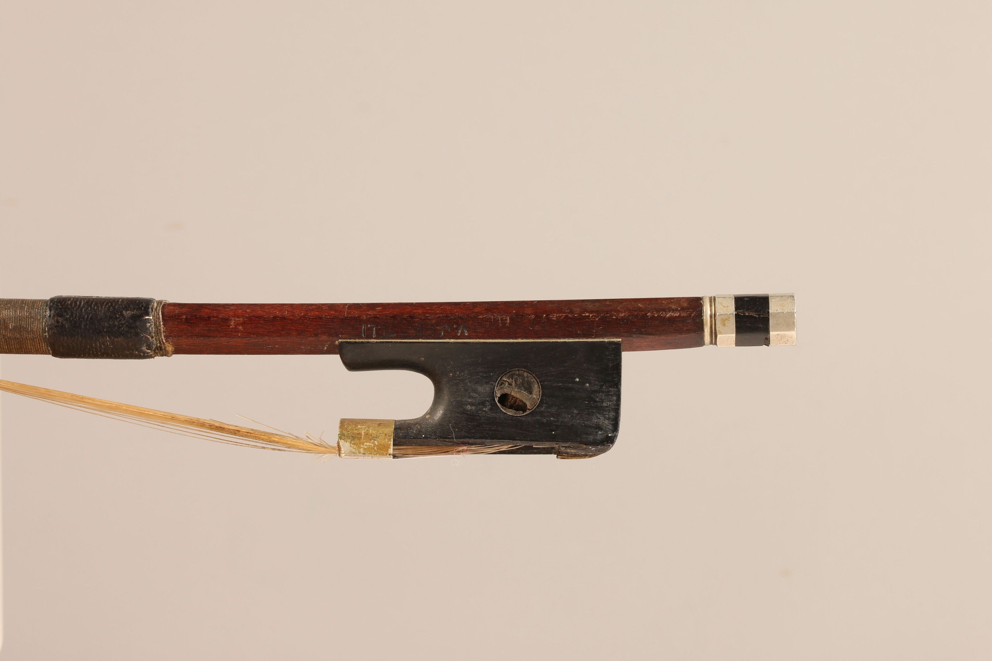 Archet de violoncelle de LABERTE, signé "VJ Ferelli", monté maillechort 61g9. Accident et manque à la hausse. (EBAW-CCN-1828)