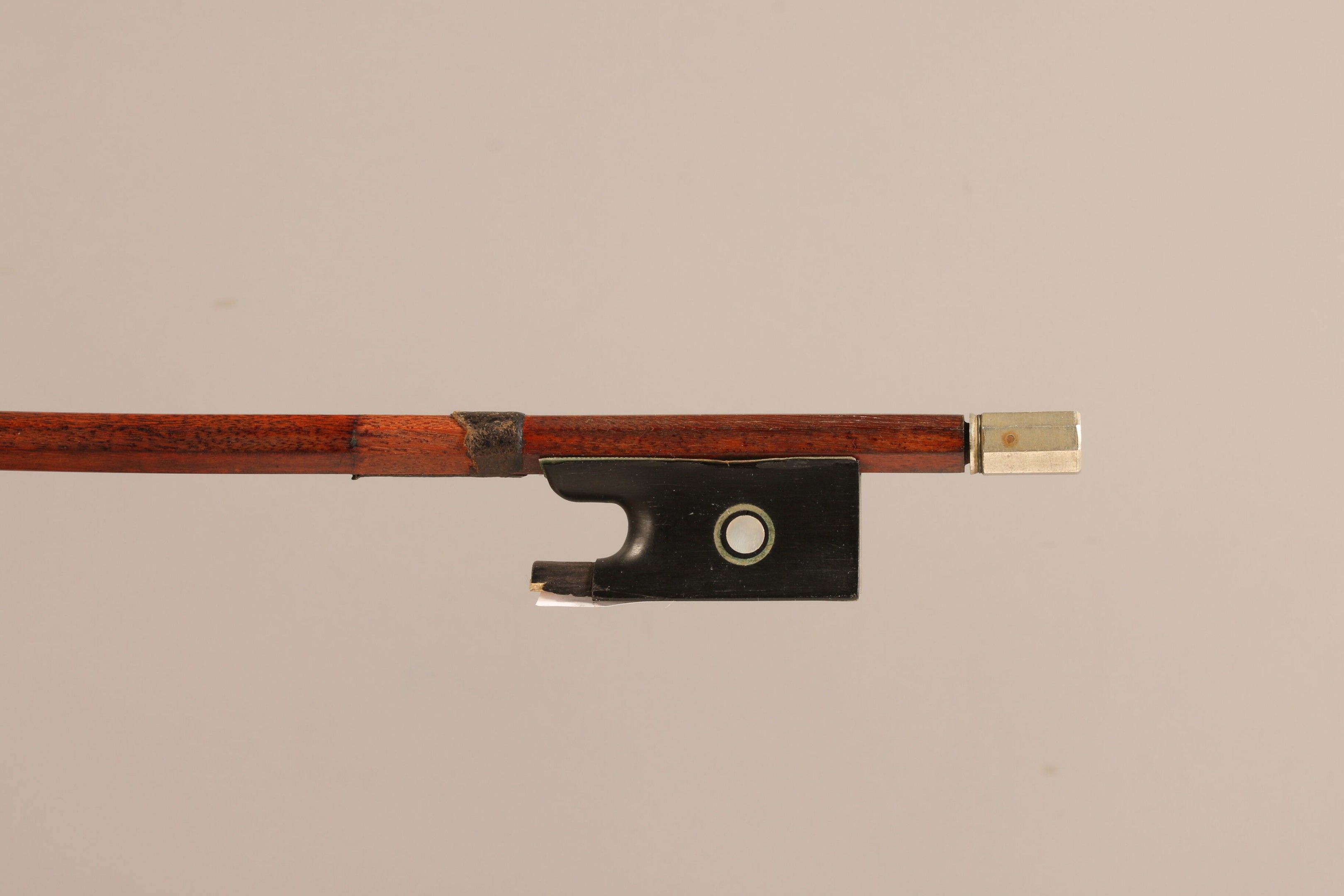 Archet de violon de Charles Alfred BAZIN, monté maillechort. 49g2, sans mèche, ni garniture, ni passant.