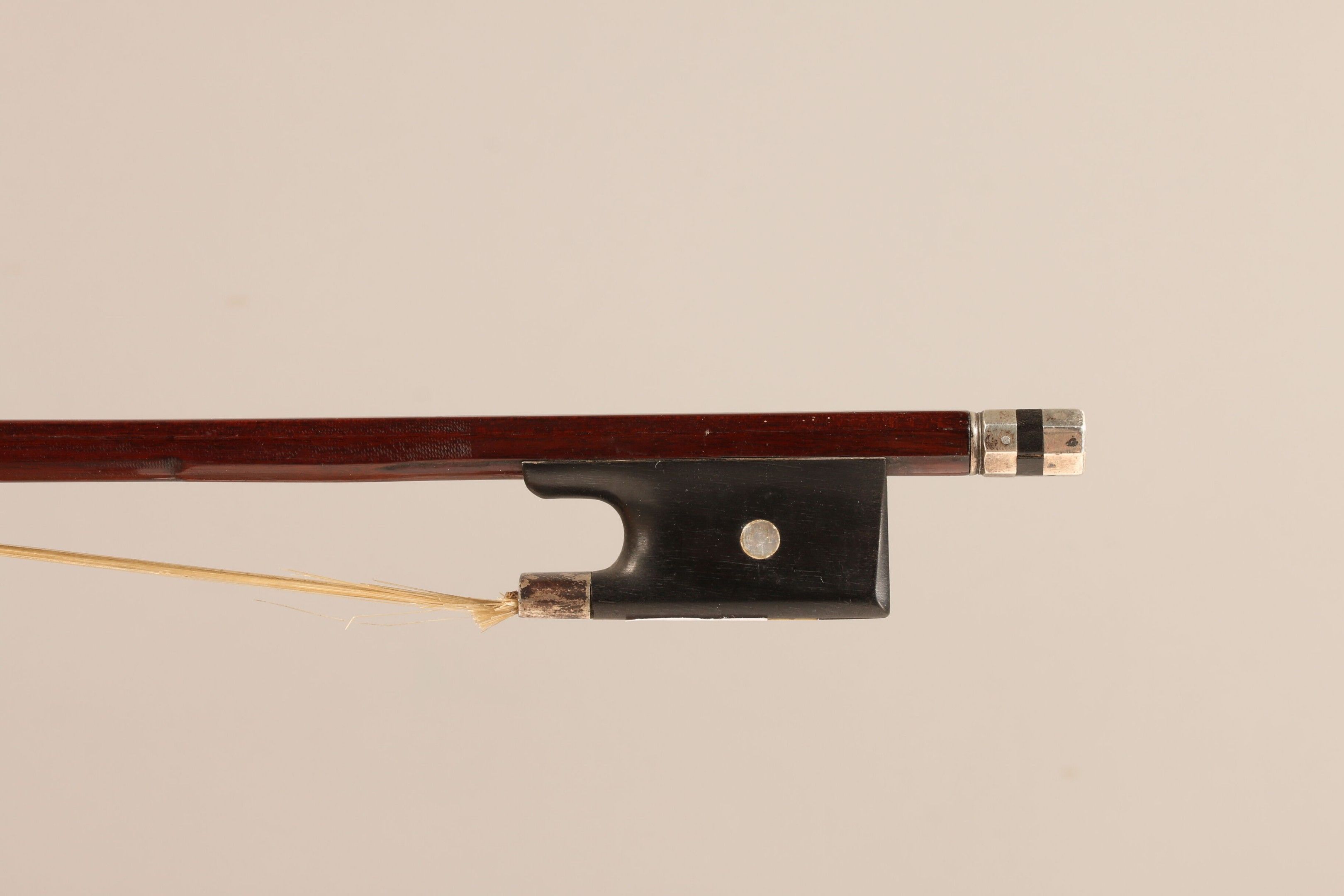 Archet de violon de JÉRÔME THIBOUVILLE-LAMY, signé "J Thibouville Lamy", monté argent. 53g9 sans garniture et mèche tres fine. Bon état.