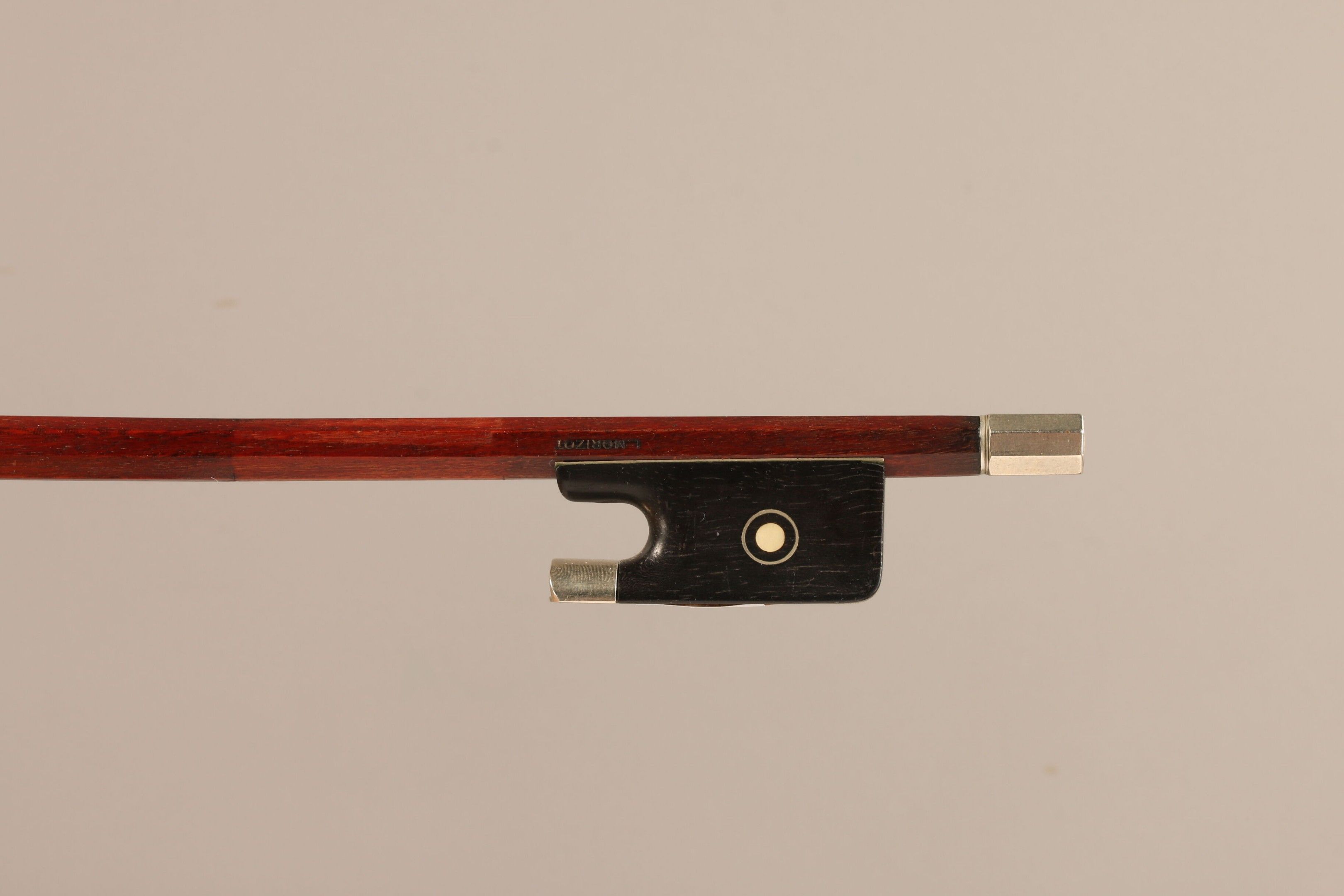 Archet de violon de MORIZOT Frères, signé "L. Morizot", monté maillechort. 49g9. Assez bon état. (EBBD-CKU-1141)
